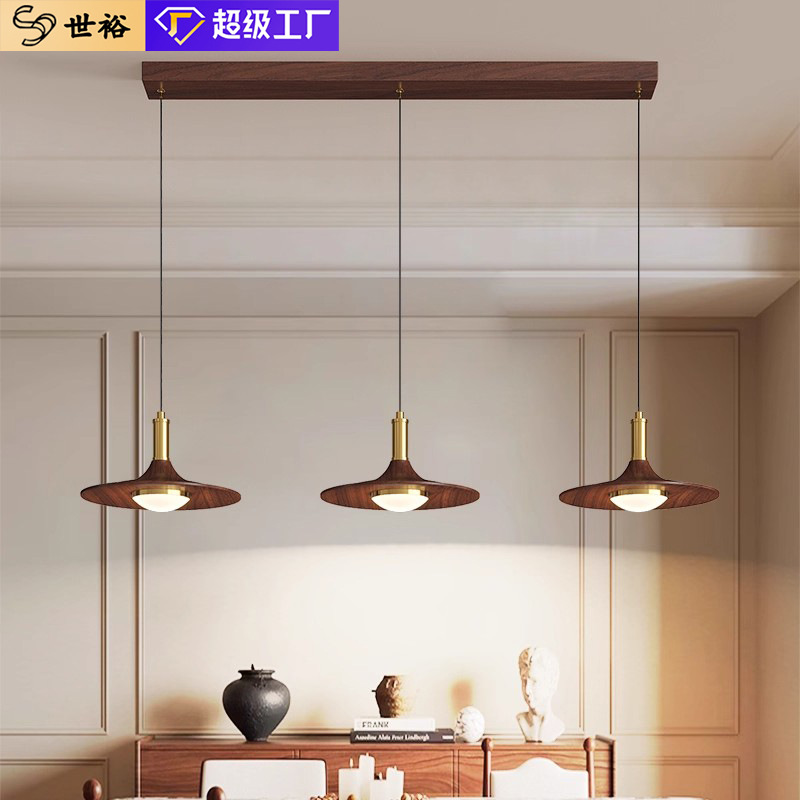 中古风餐厅吊灯复古胡桃木色餐桌吧台灯创意大气护眼卧室床头灯具