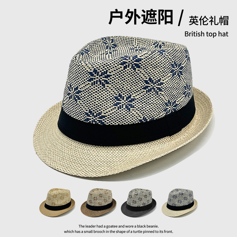 国境を越えたココナツの木模様のジャズ帽男性夏のレジャー帽お父さんビーチ帽屋外中高年日焼け止め帽