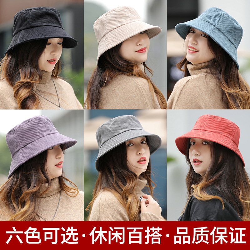 コーデュロイ漁夫帽女性ネット赤ファッション秋冬保温帽子高品質の顔を見せています。