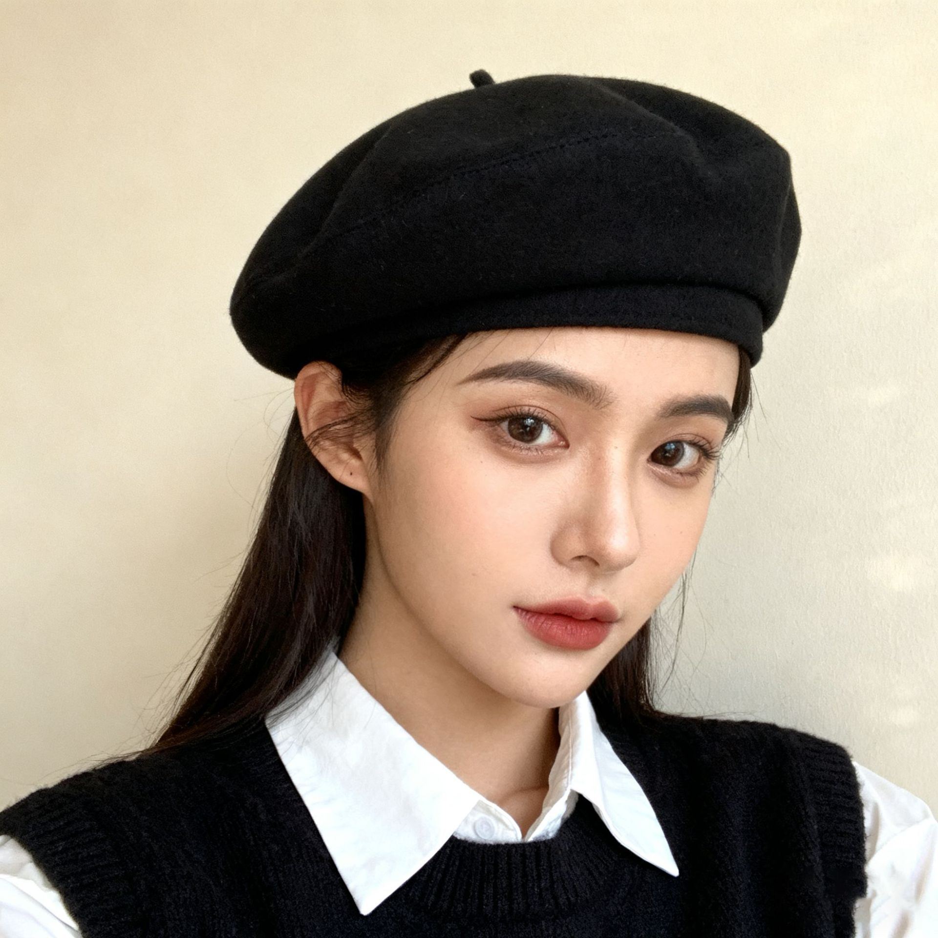 韓国版の秋冬ウールベレー帽、レディースレトロウールカジュアルペインターハット、日本のシンプルなベレー帽、トレンディ