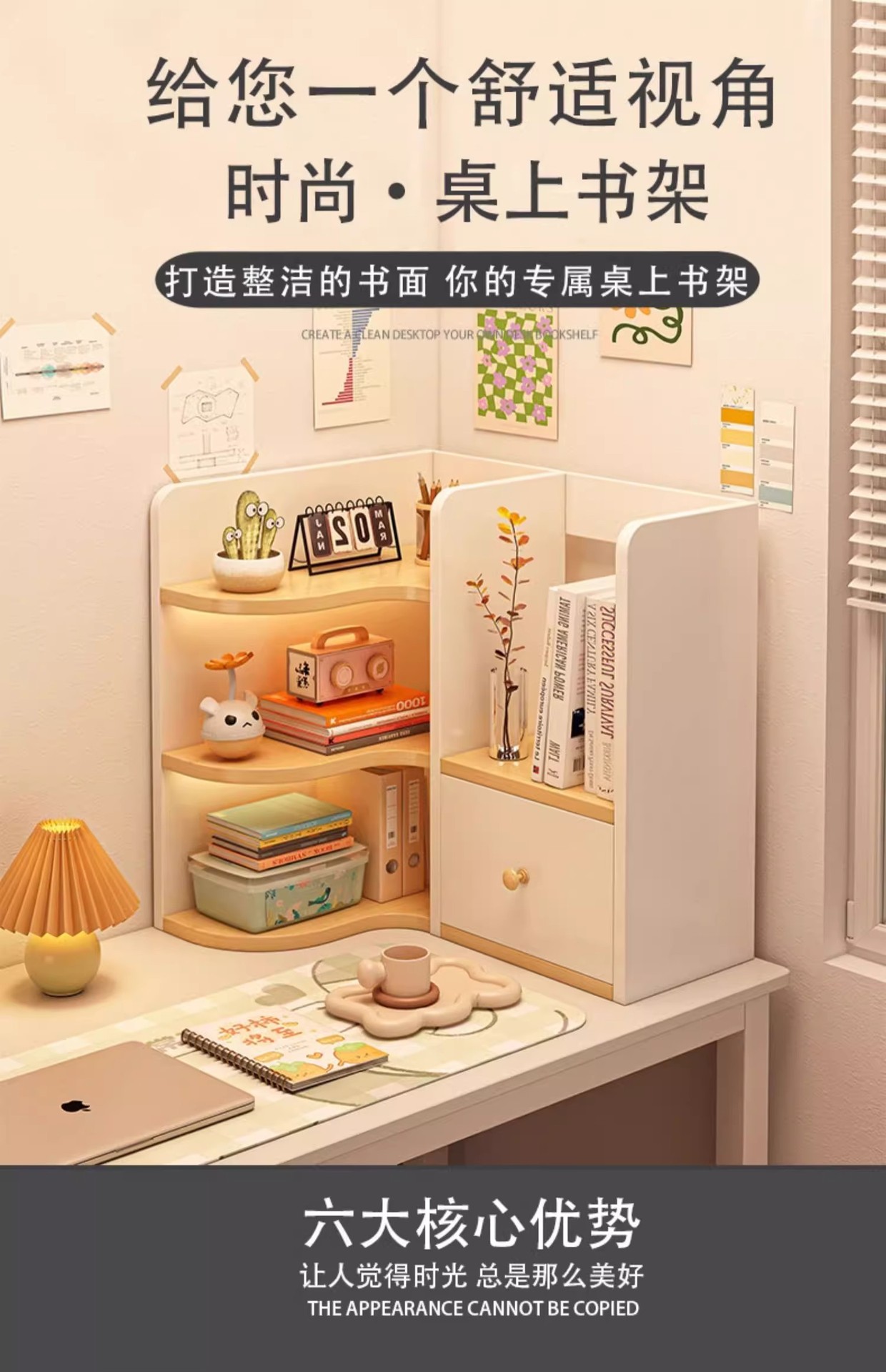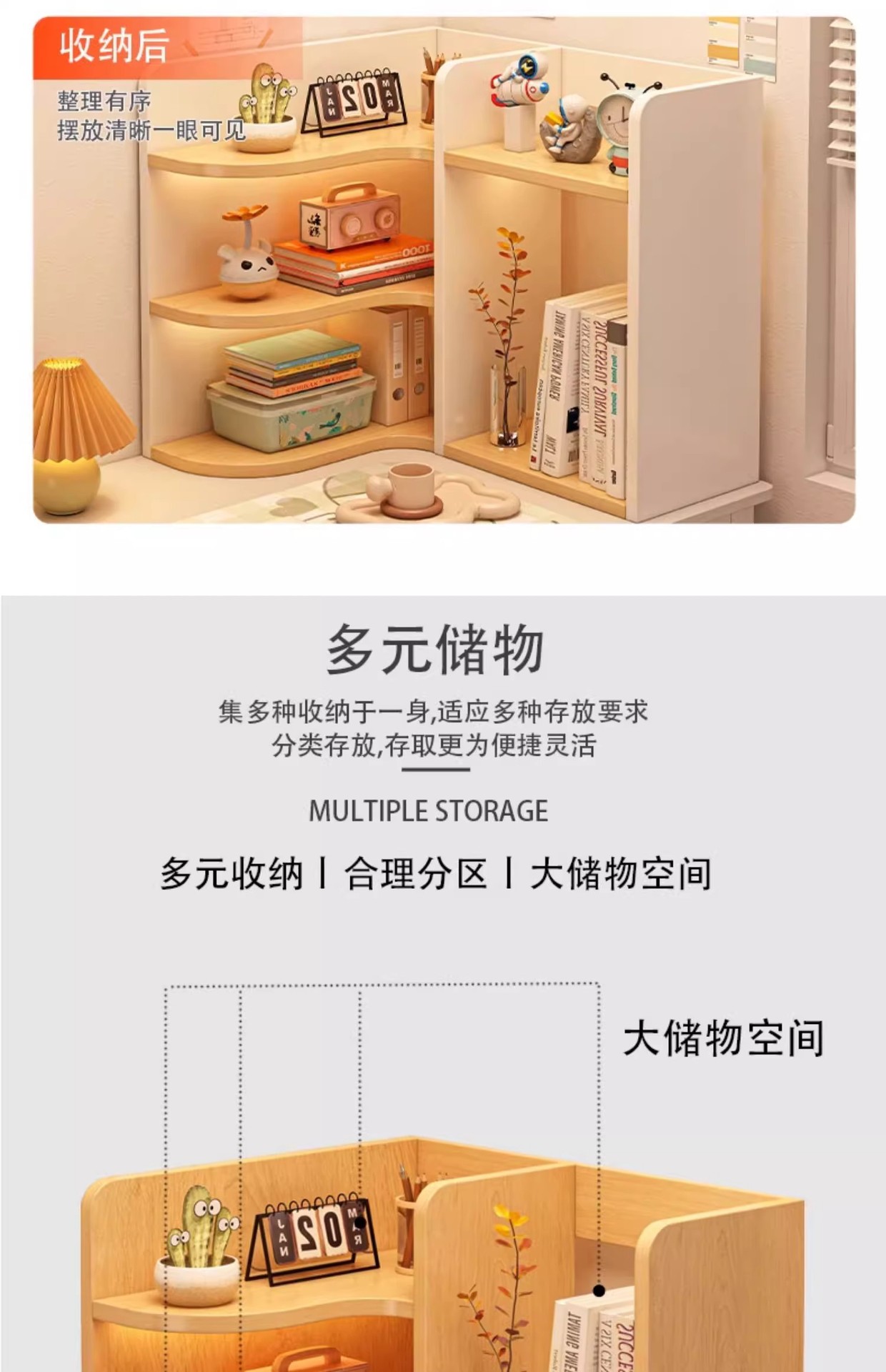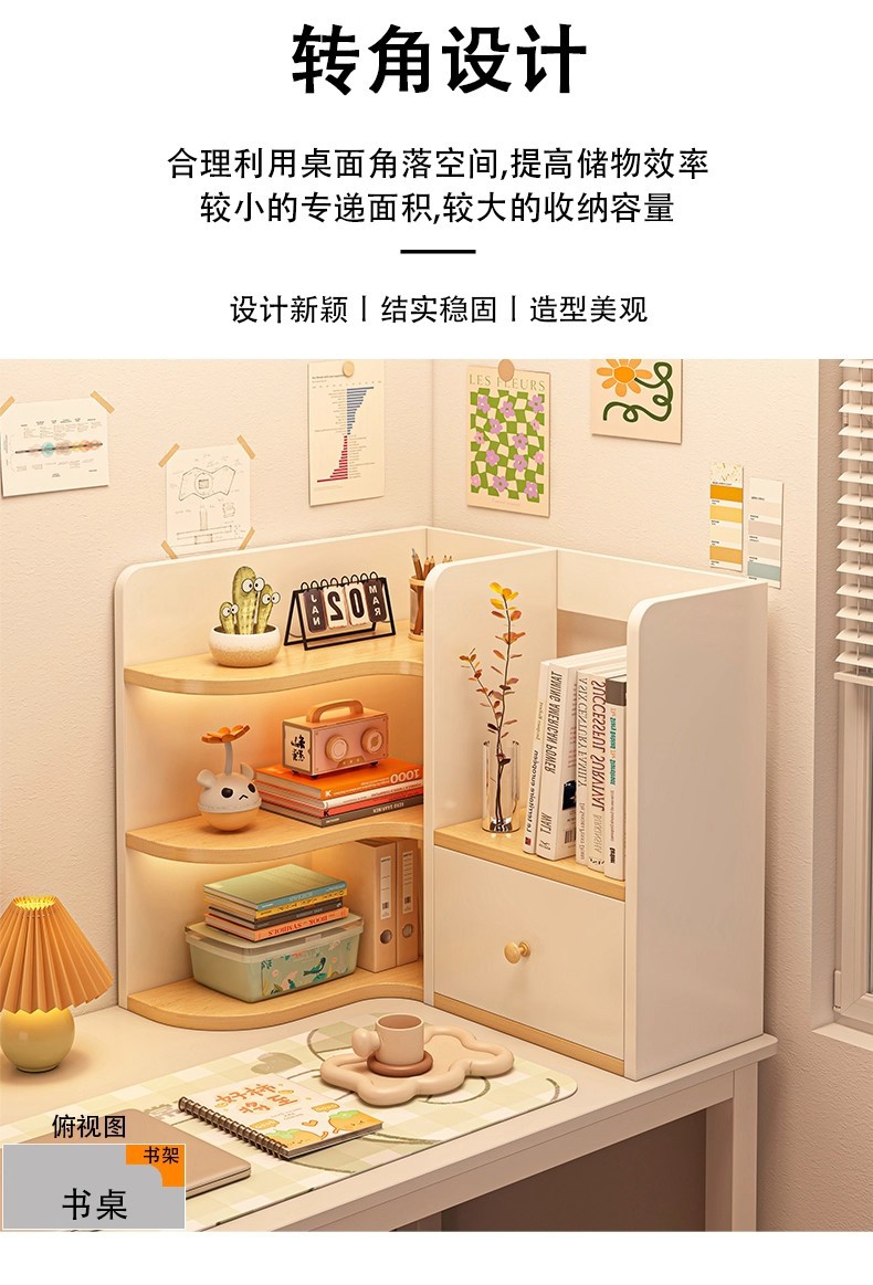 桌面书架桌上转角柜工位收纳架书桌边柜宿舍储物柜子小书柜置物架