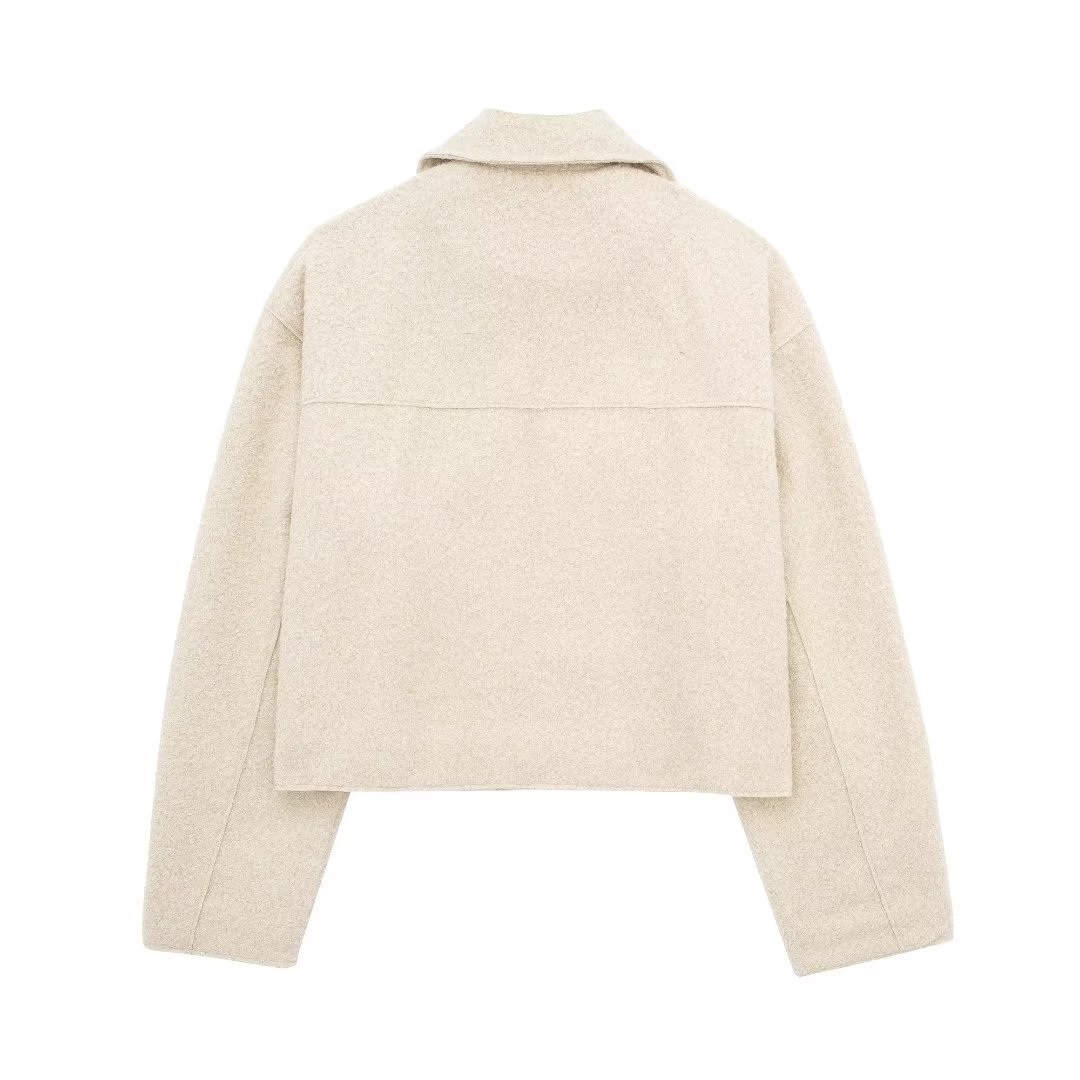 2024跨境春秋新品女装设计感小众街头时尚宽松短款毛呢夹克外套女