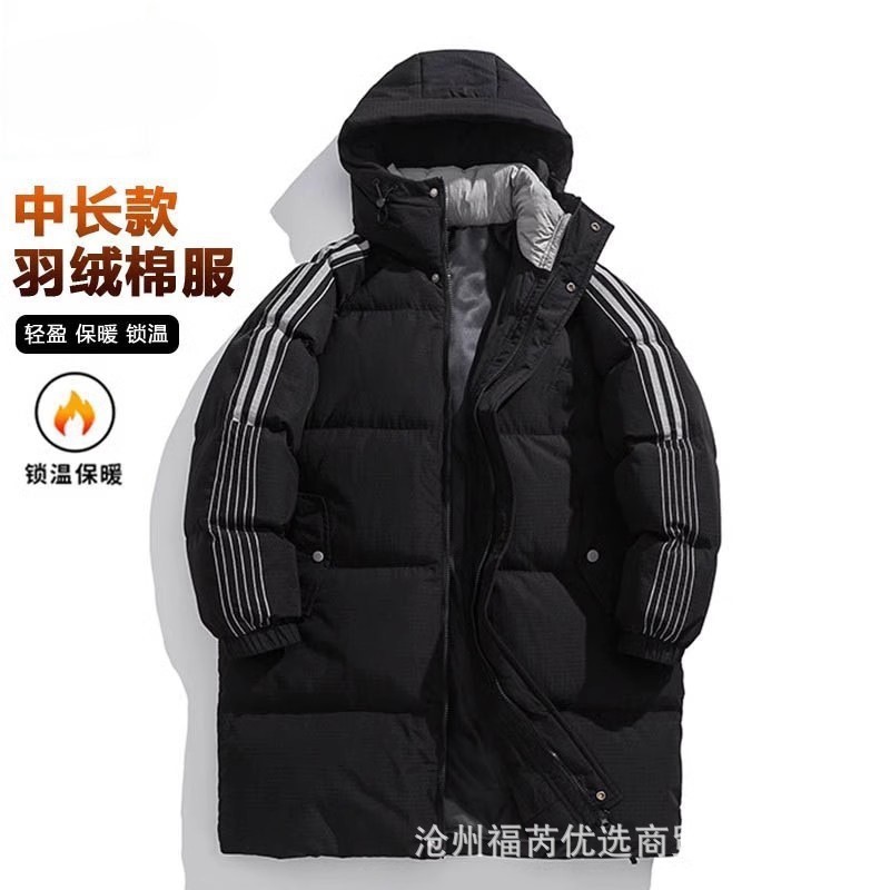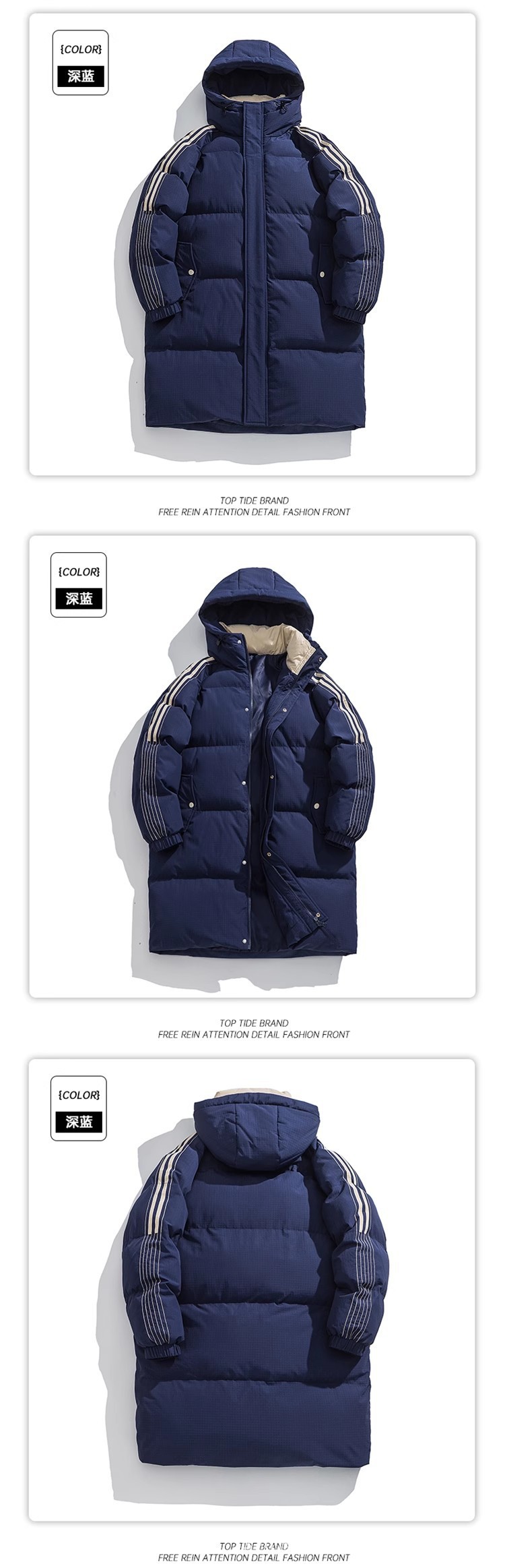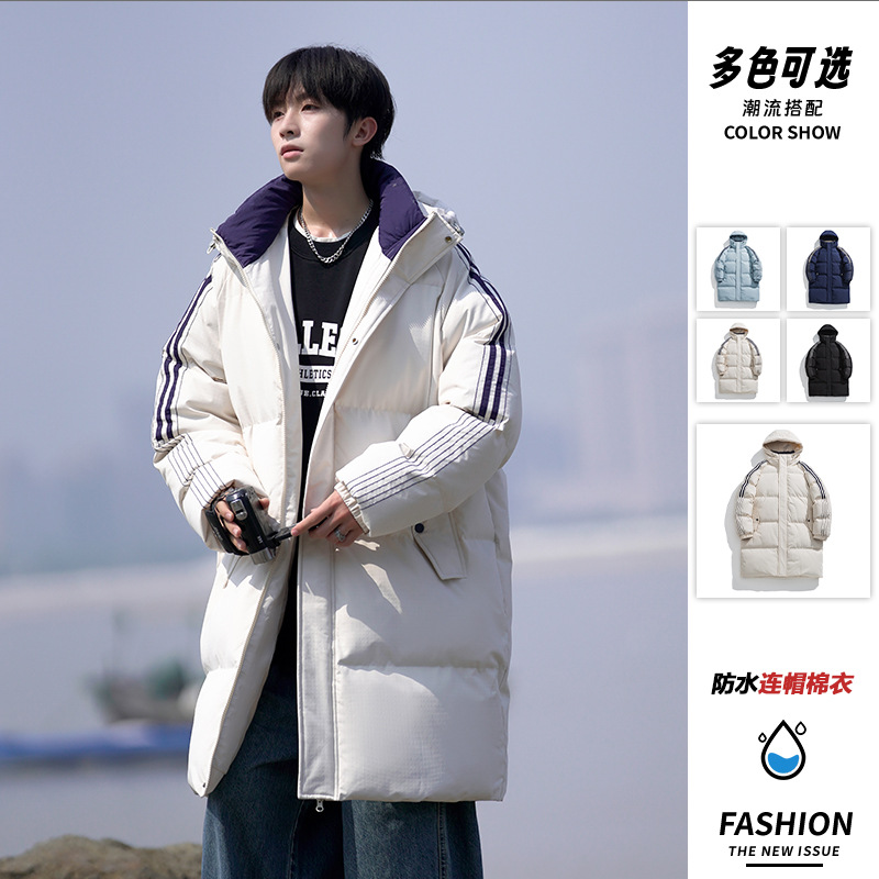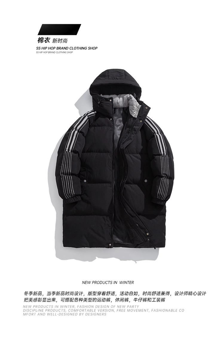 跨境冬季中长款条纹棉衣男士冬季潮牌休闲青少年加厚保暖棉服外套