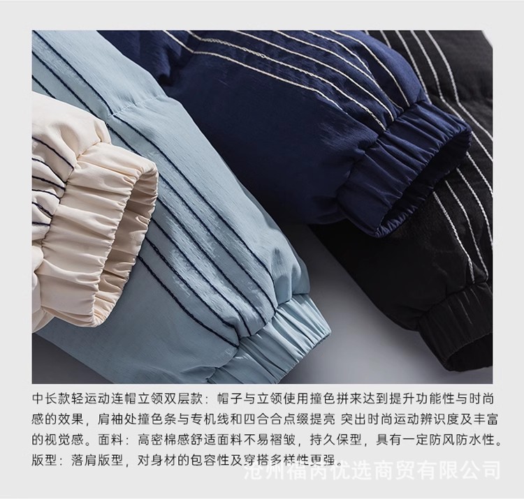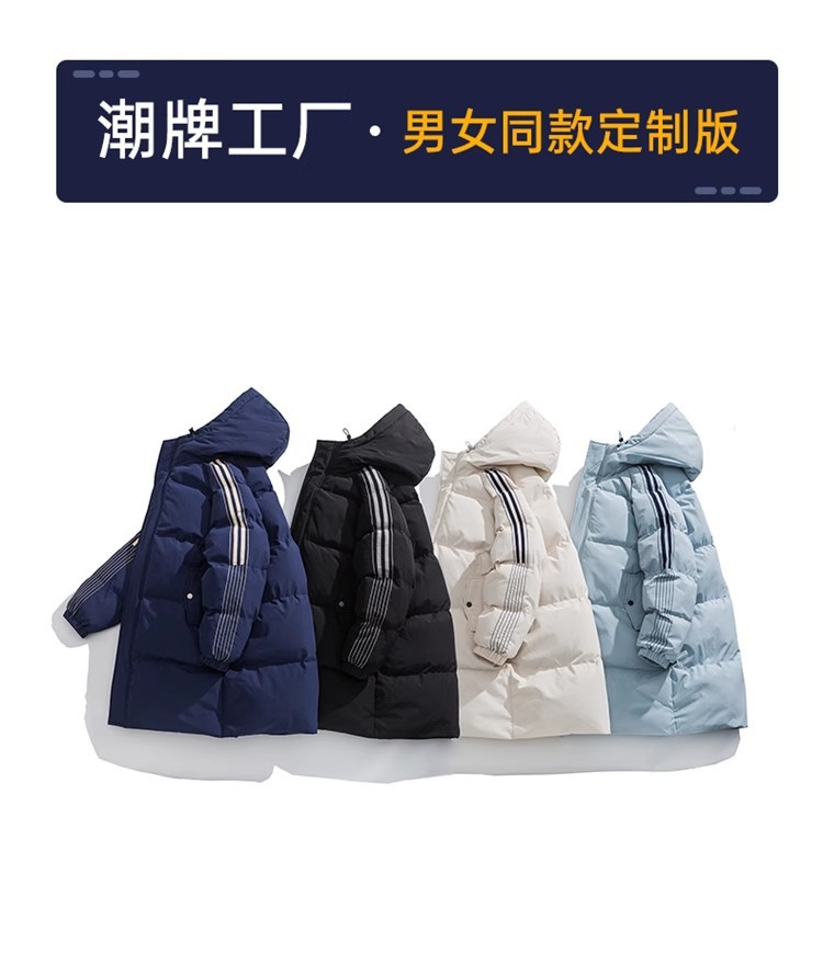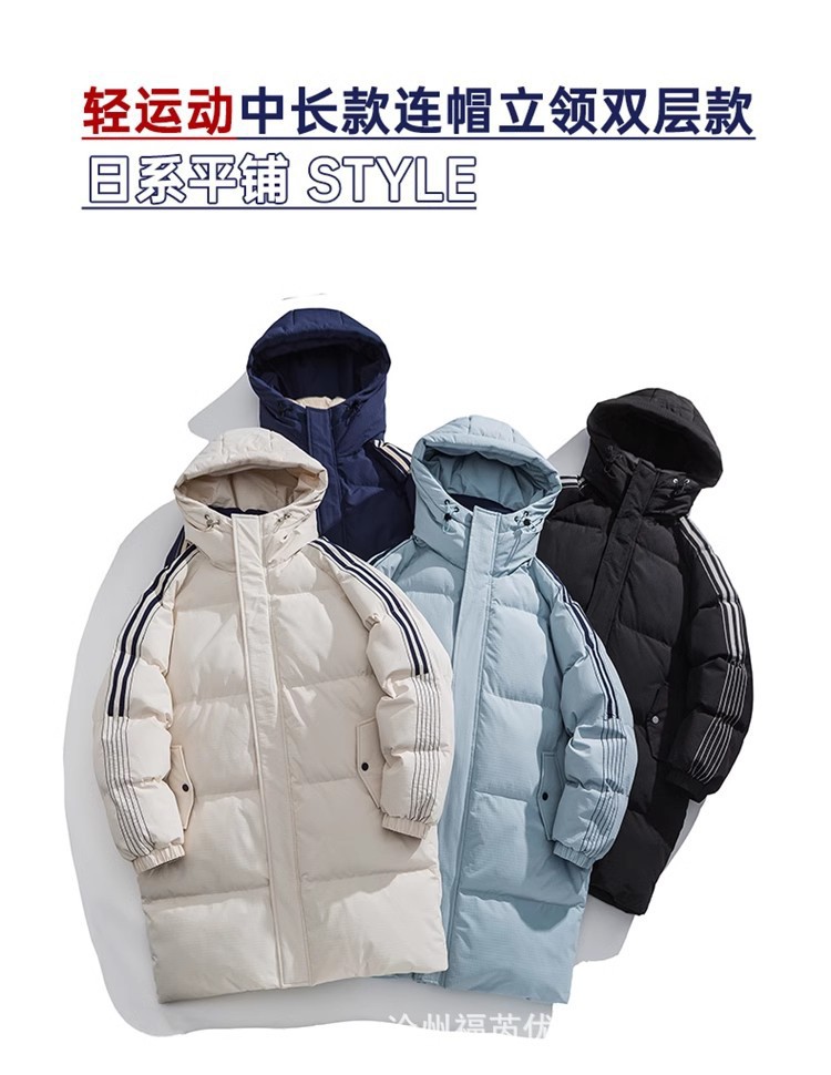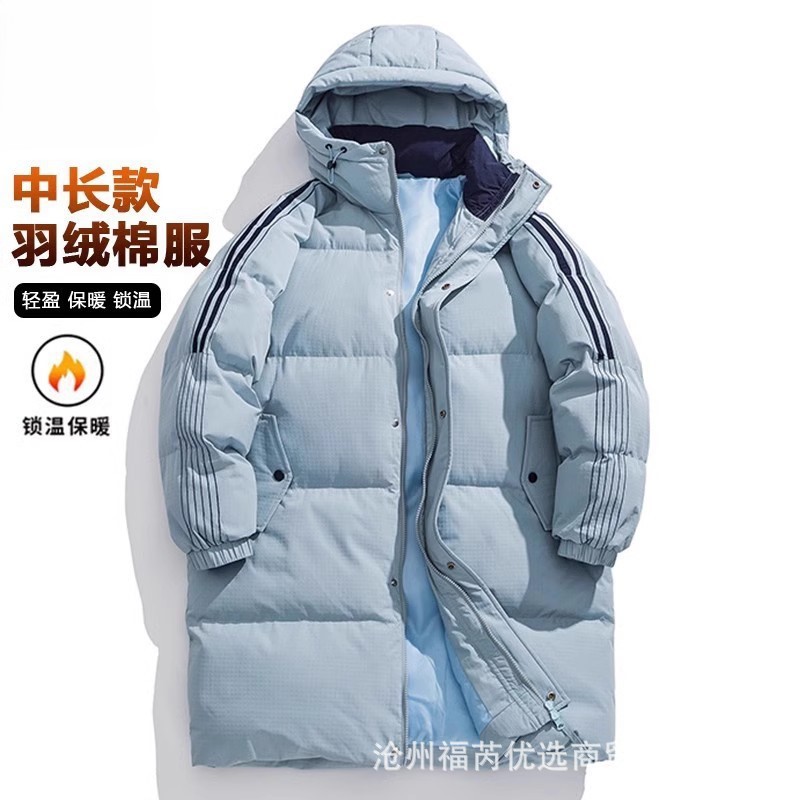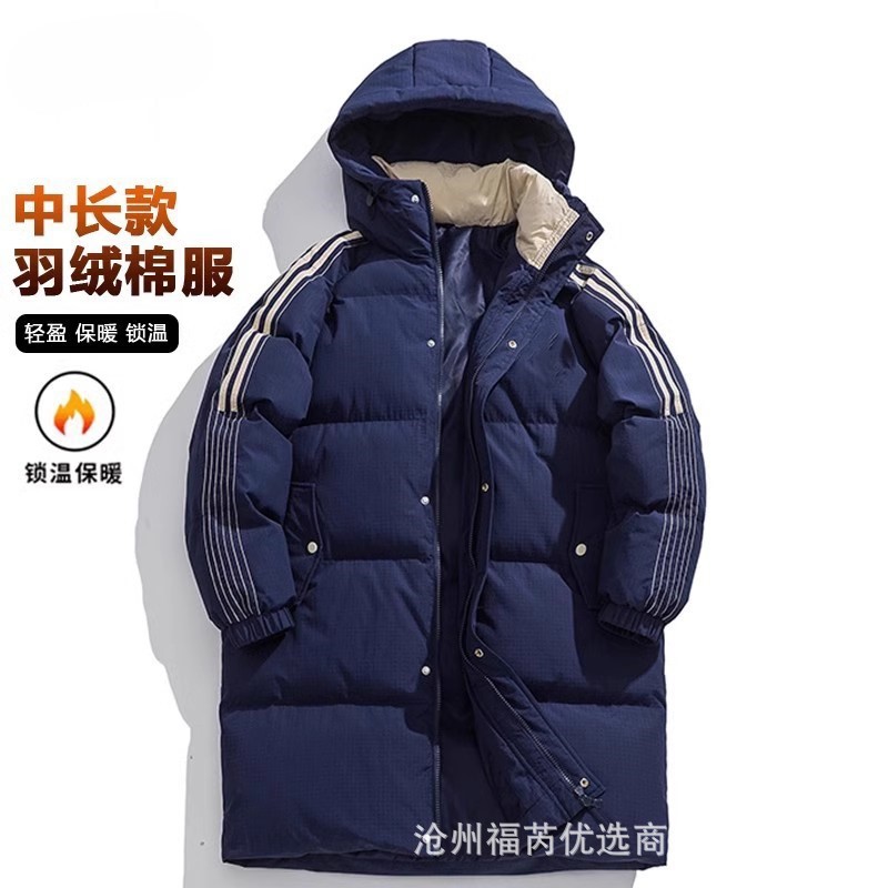 跨境冬季中长款条纹棉衣男士冬季潮牌休闲青少年加厚保暖棉服外套