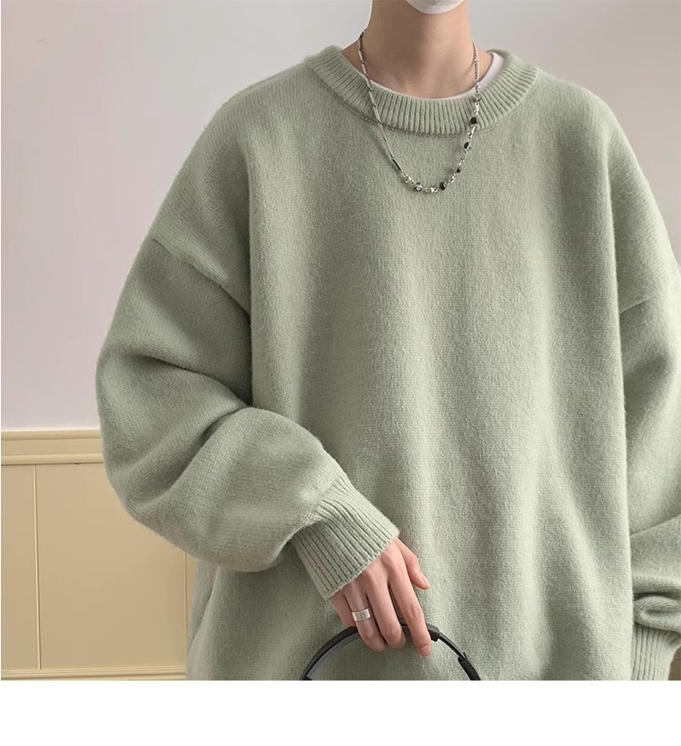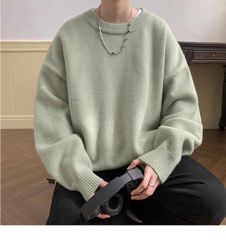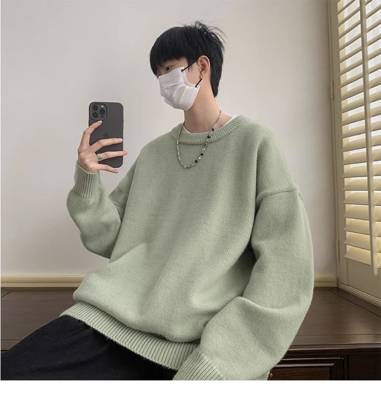 青少年毛衣男秋冬季慵懒风高级感潮牌宽松圆领男士内搭打底针织衫
