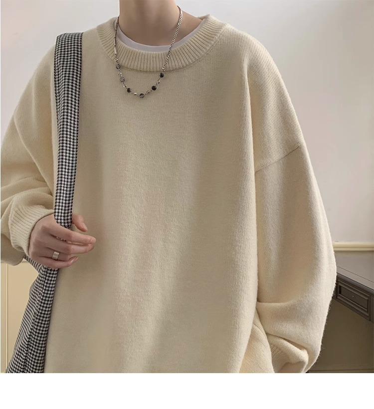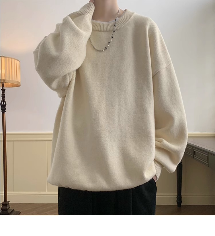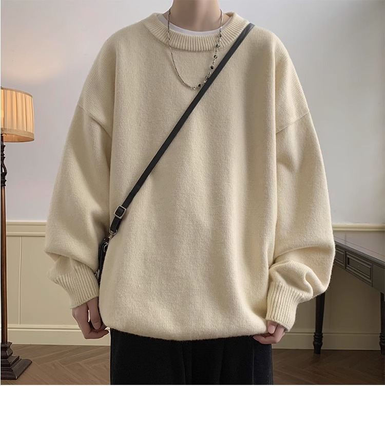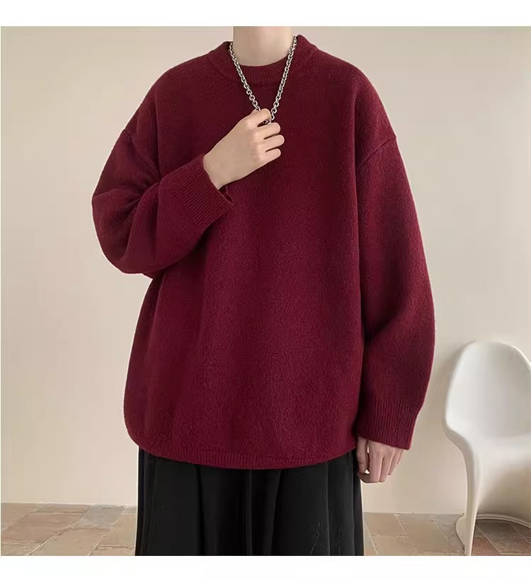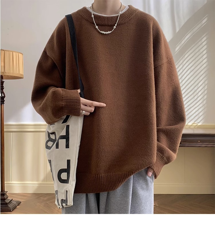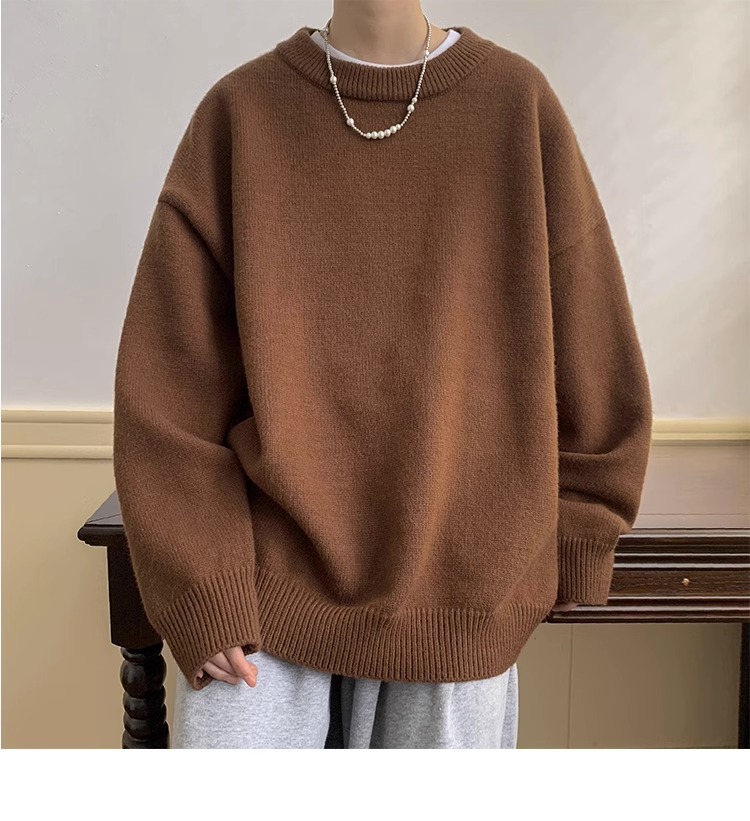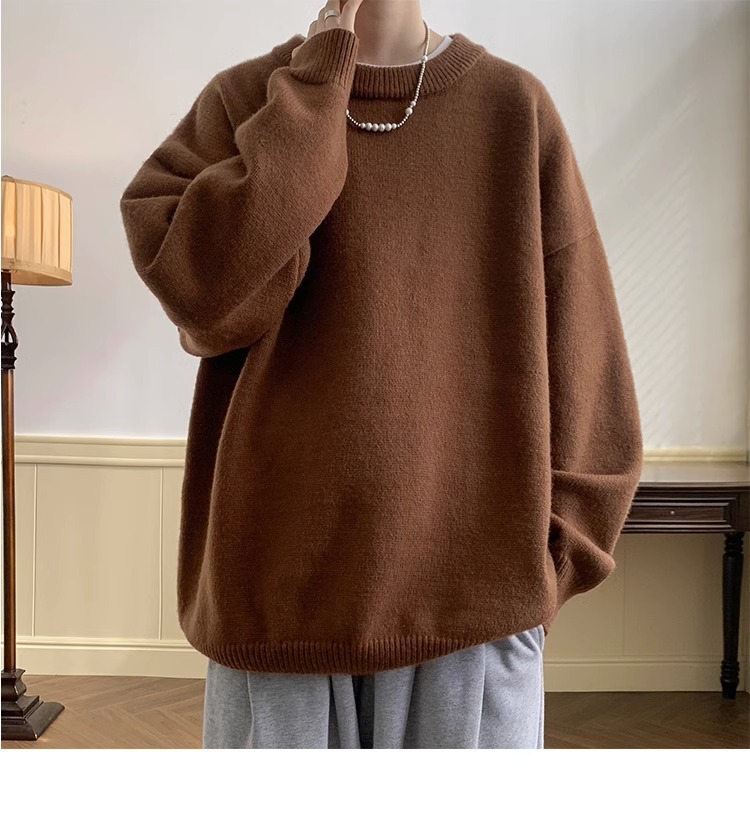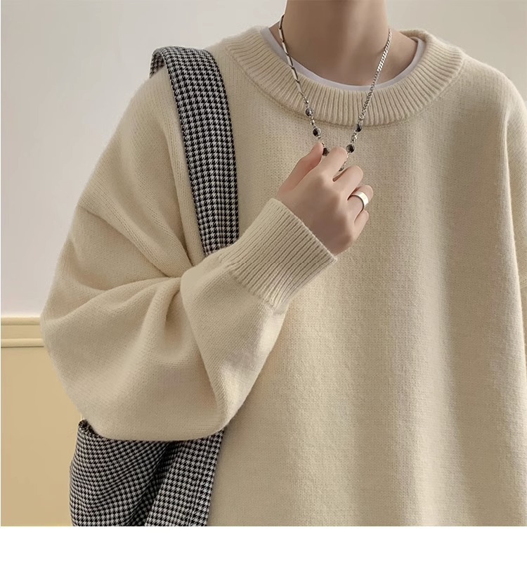 春秋の丸首のセーターの男性は日本のゆったりしていて、だらだらしています。