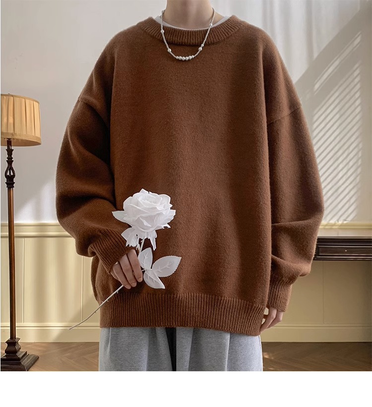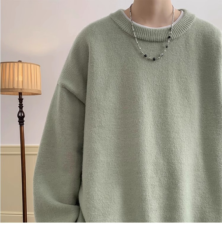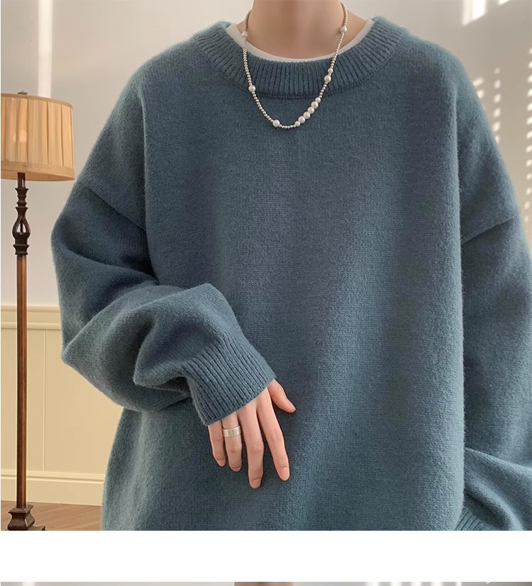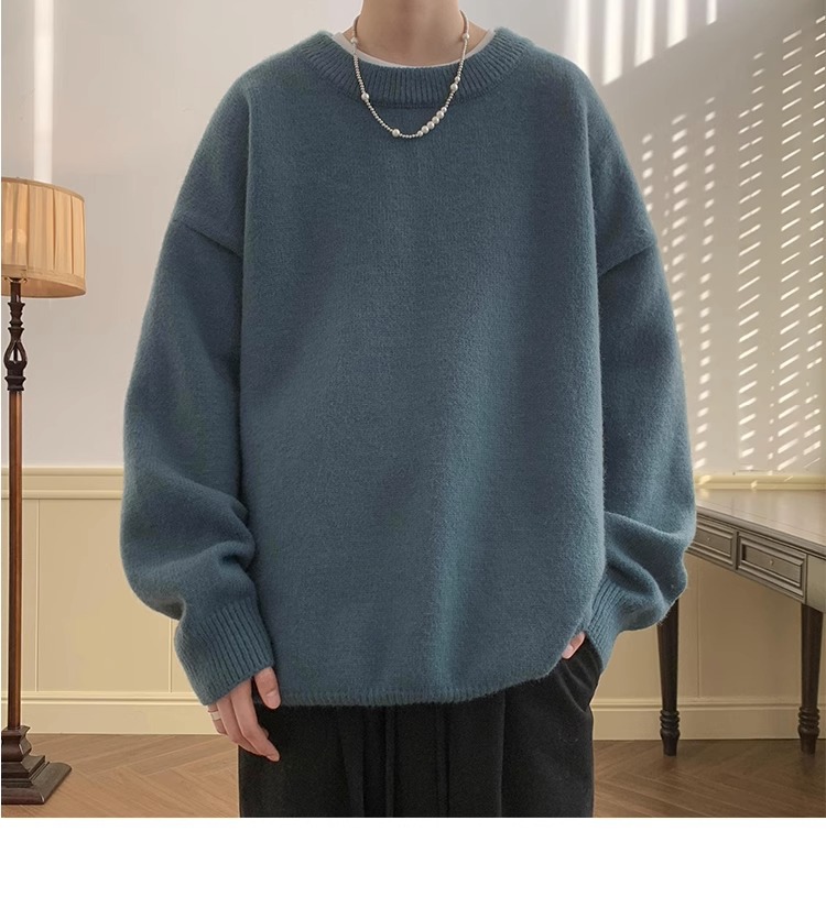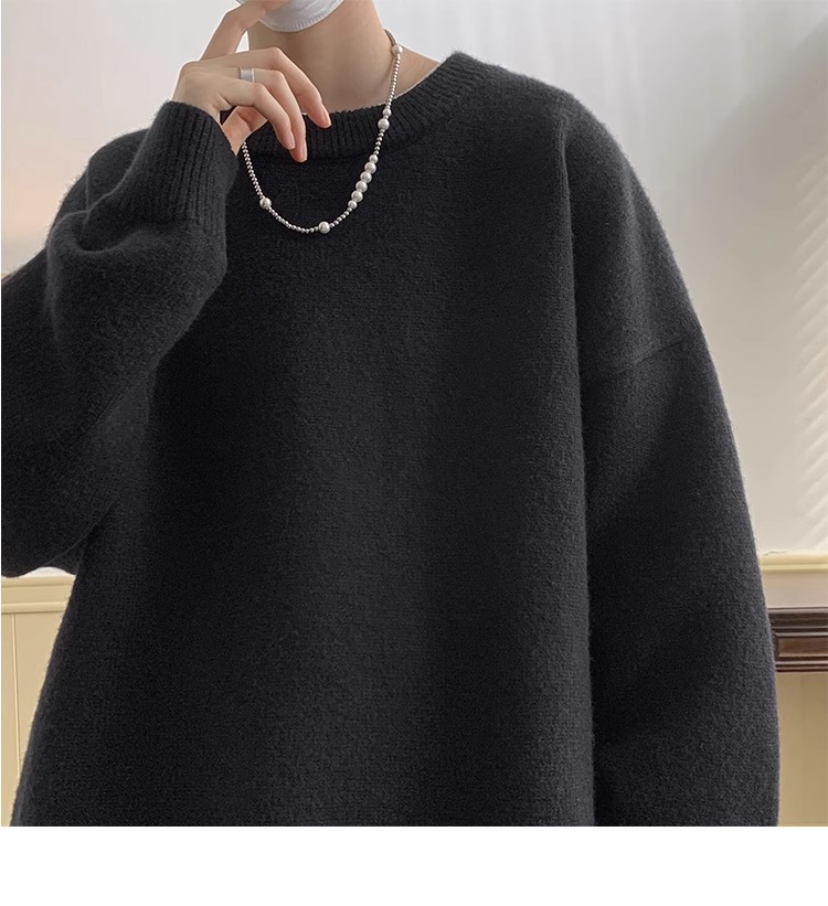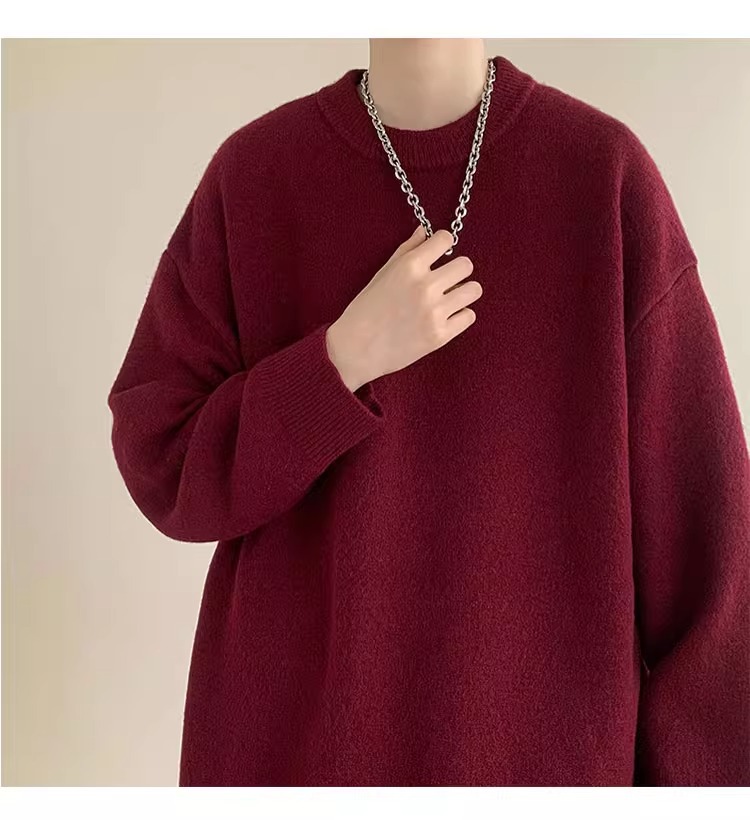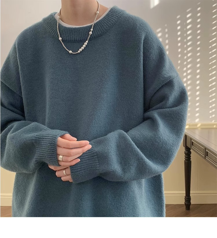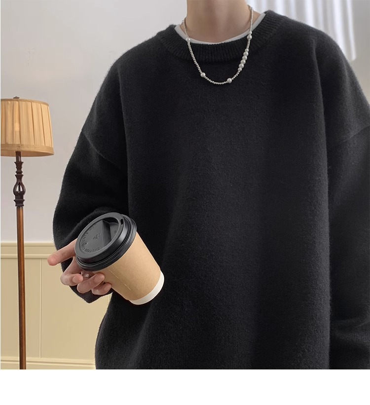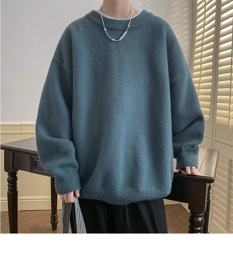 春秋の丸首のセーターの男性は日本のゆったりしていて、だらだらしています。