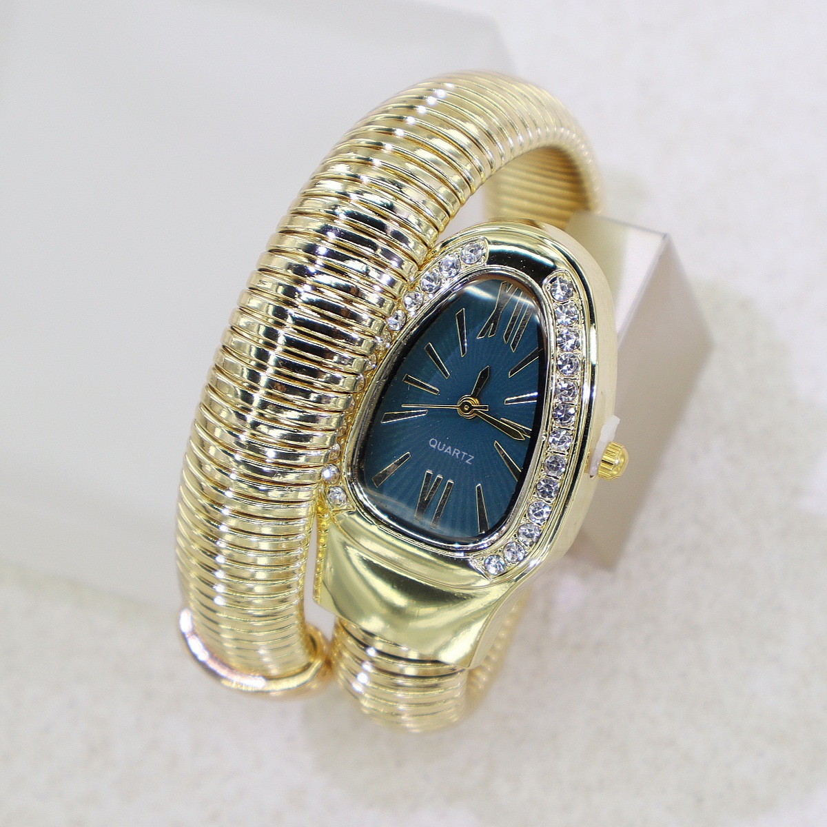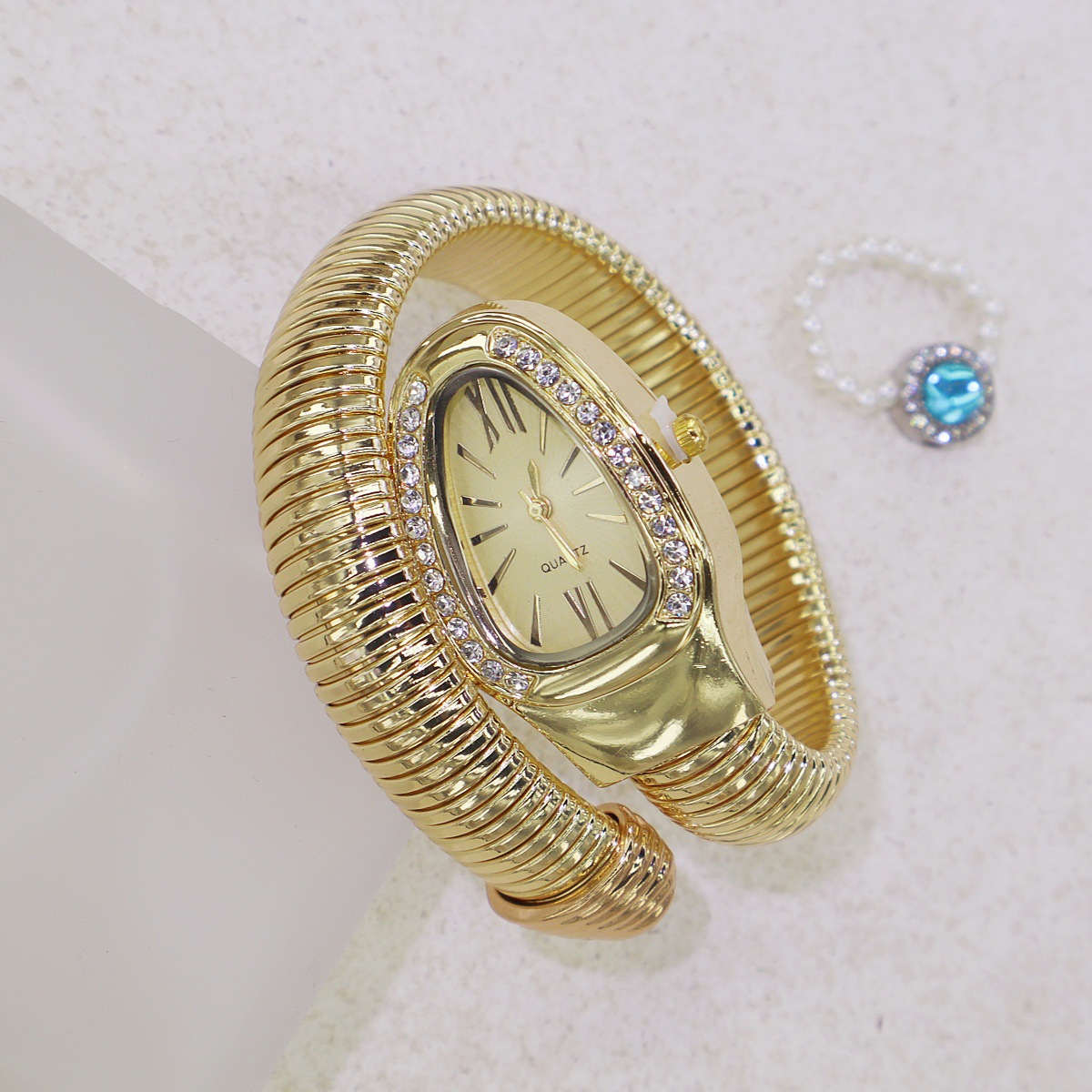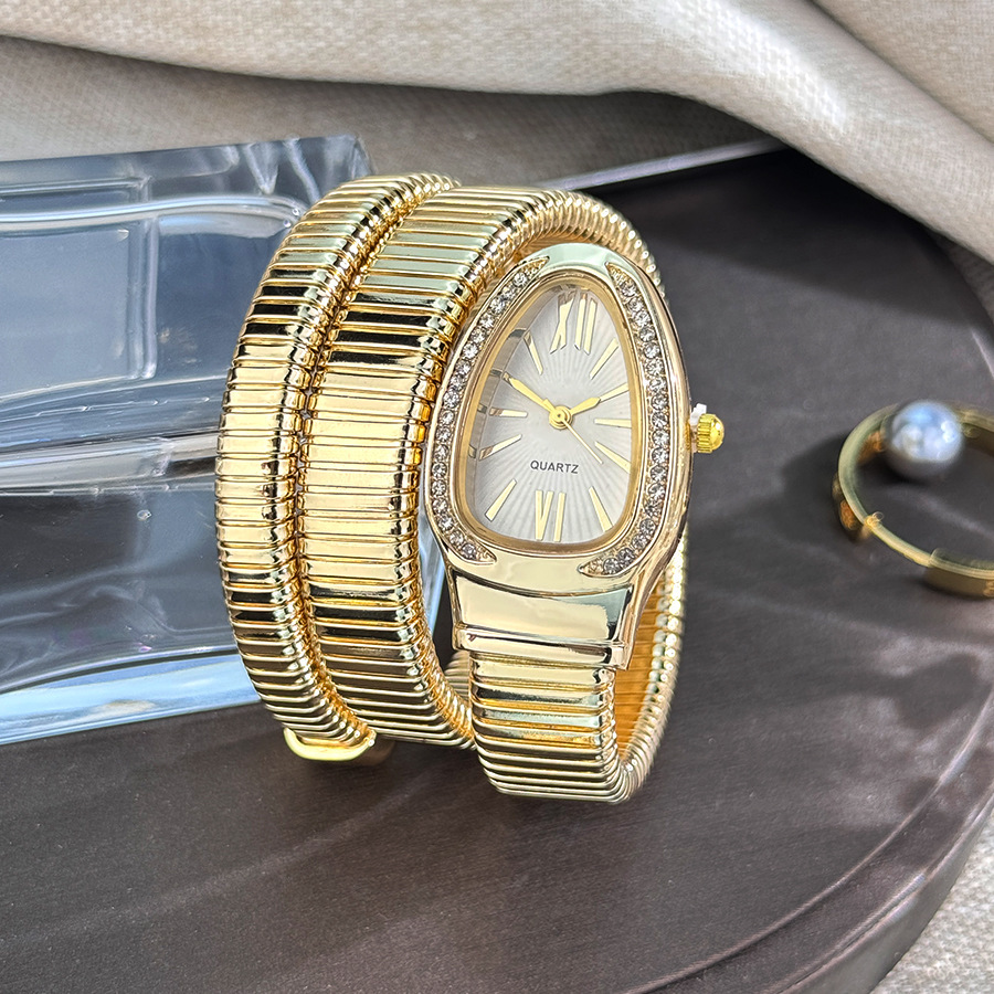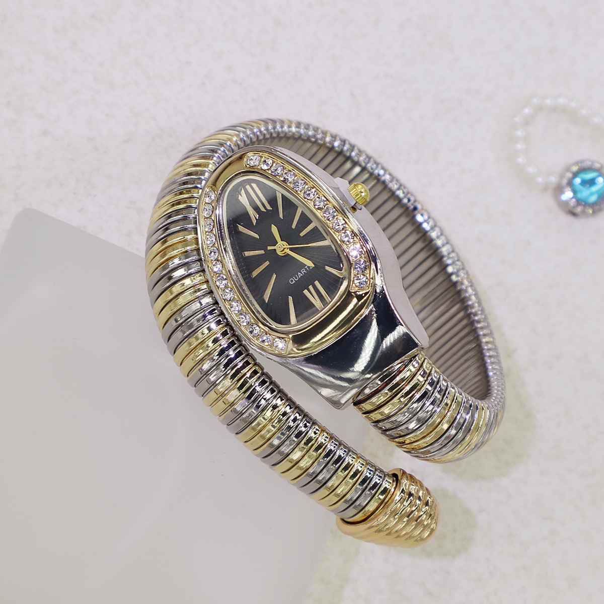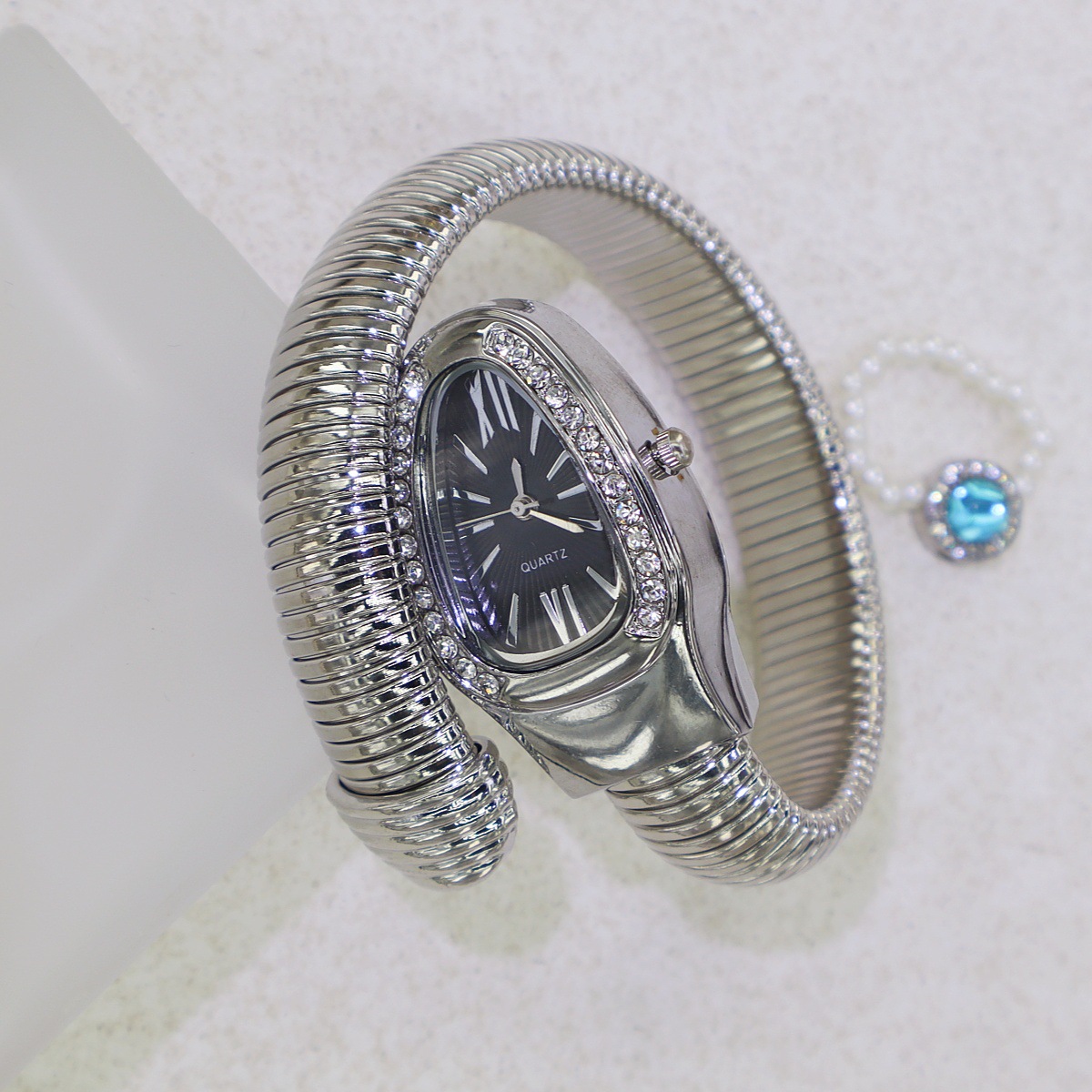 25年夏季新款外贸特色热销款镶钻弹力缠绕蛇形精美腕表工厂直销款