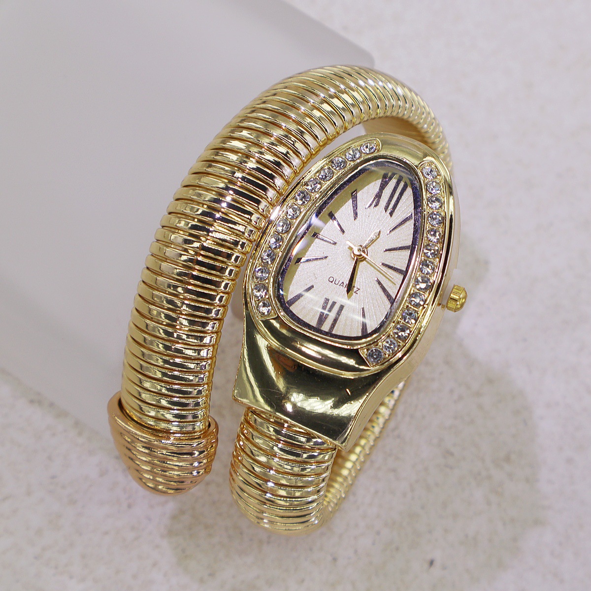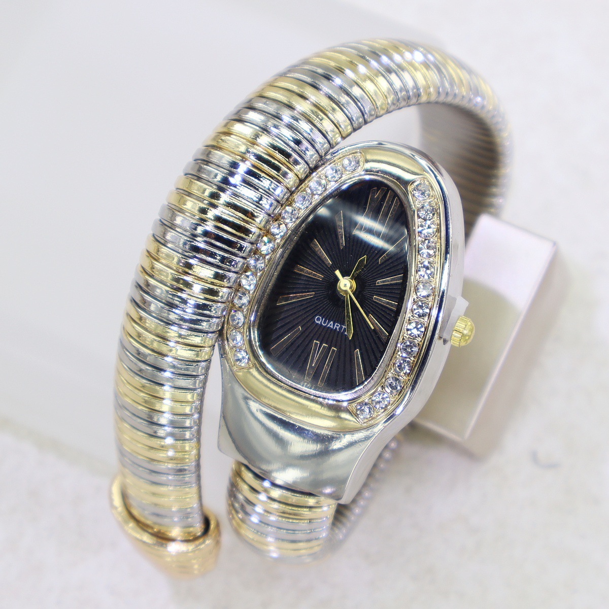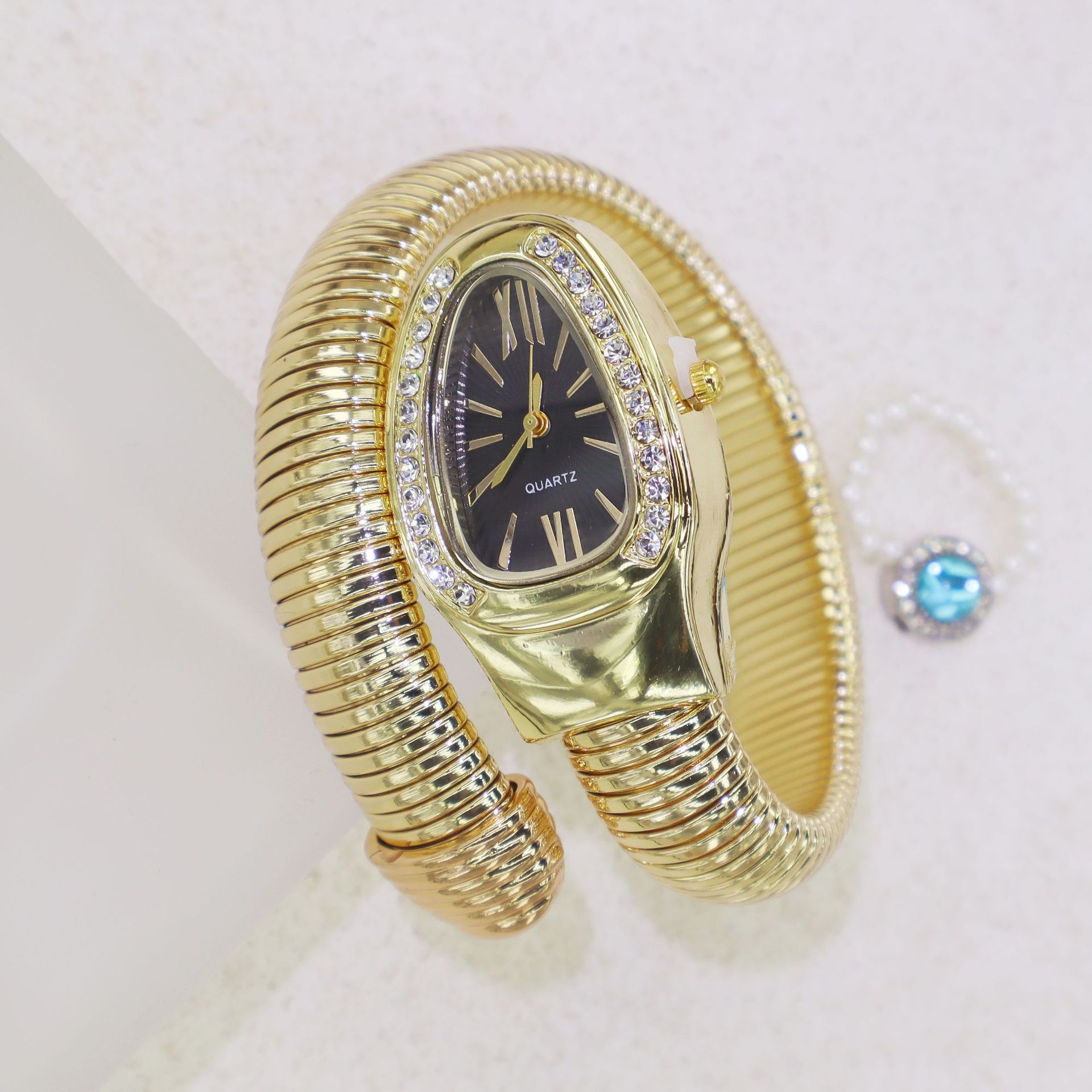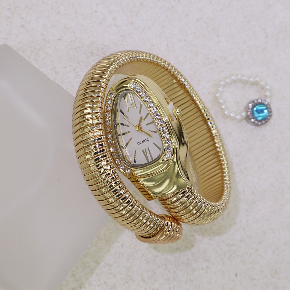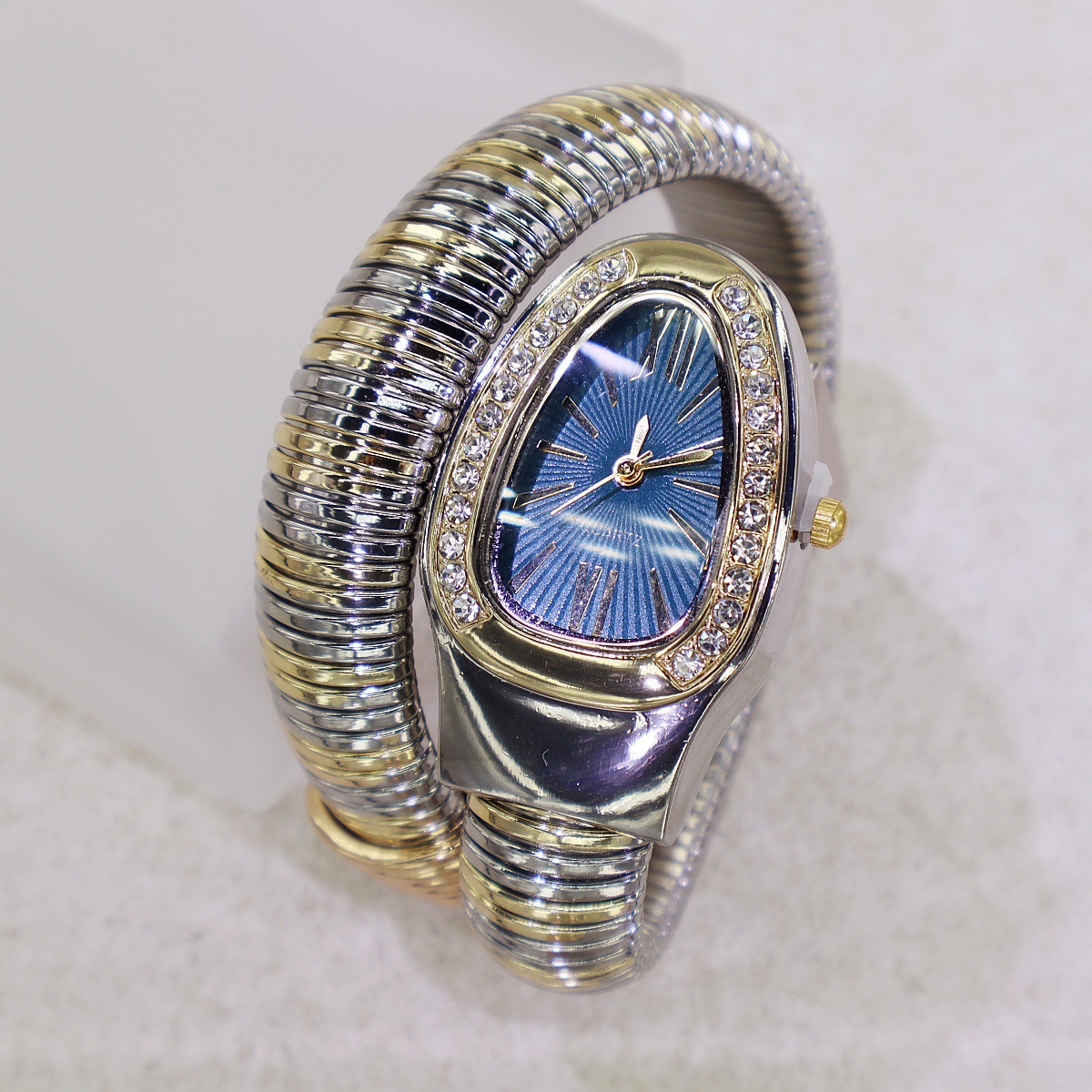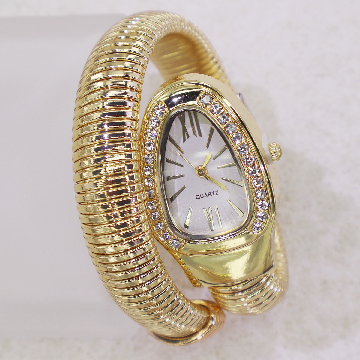 25年夏季新款外贸特色热销款镶钻弹力缠绕蛇形精美腕表工厂直销款