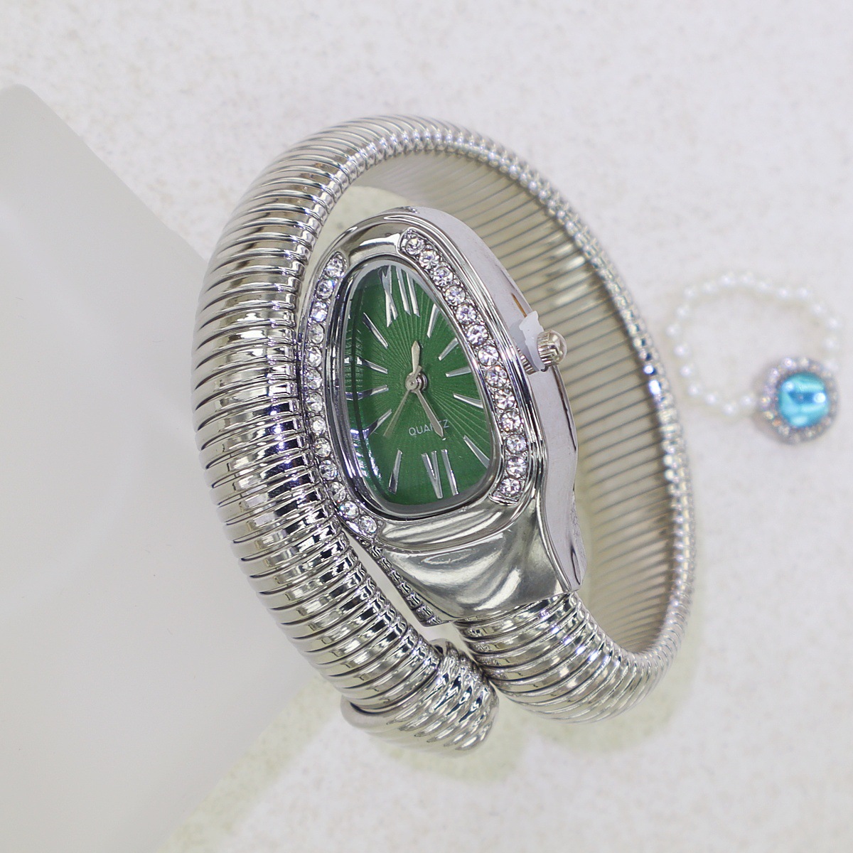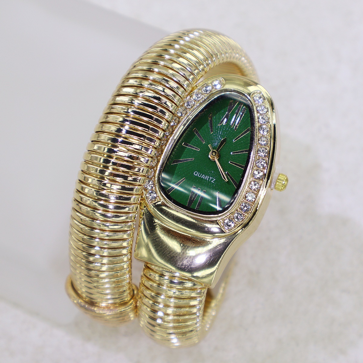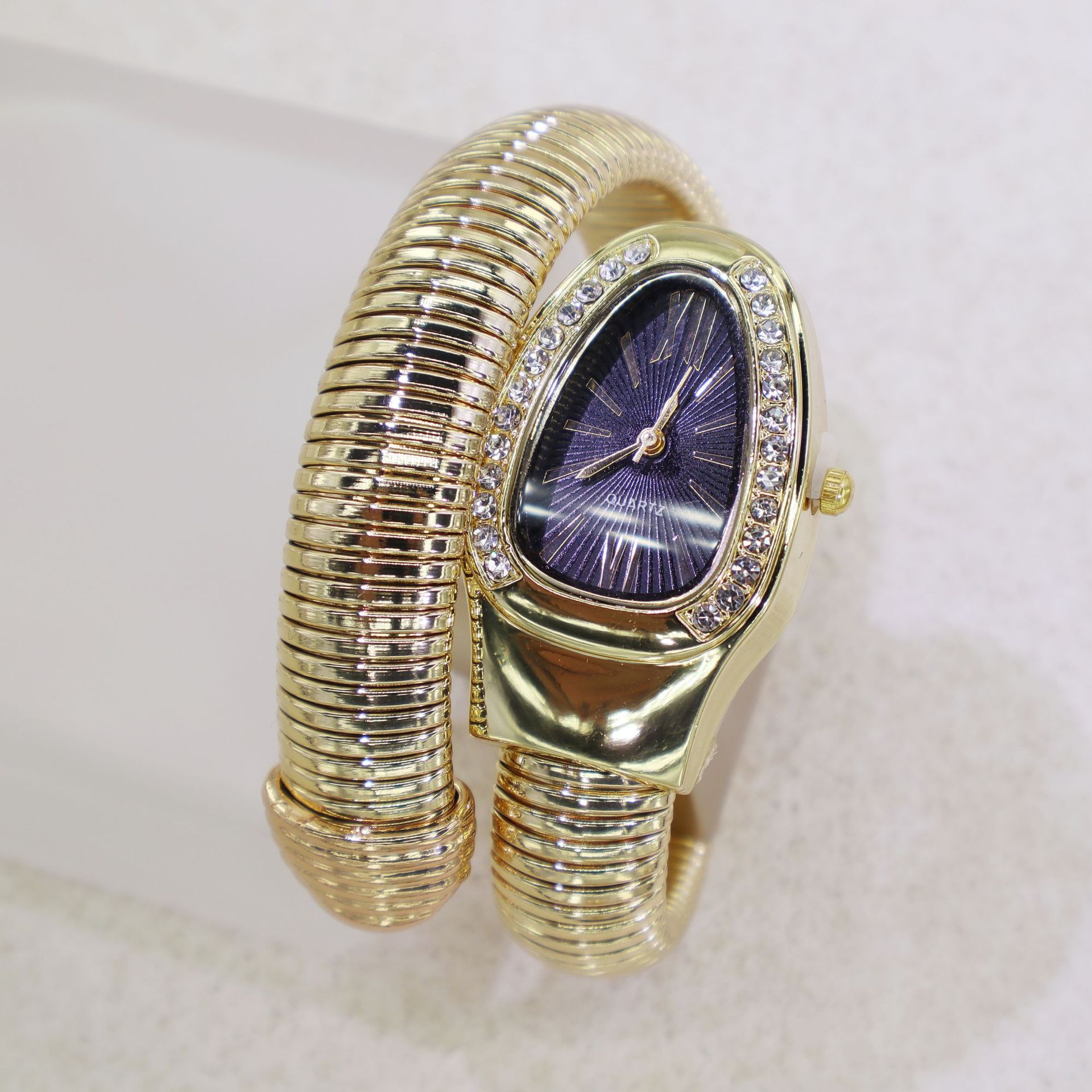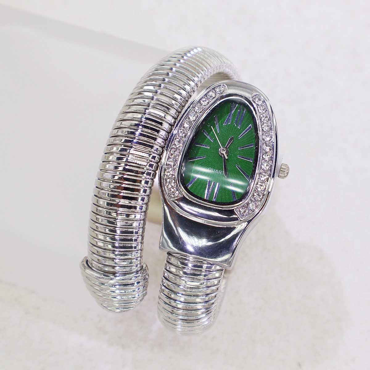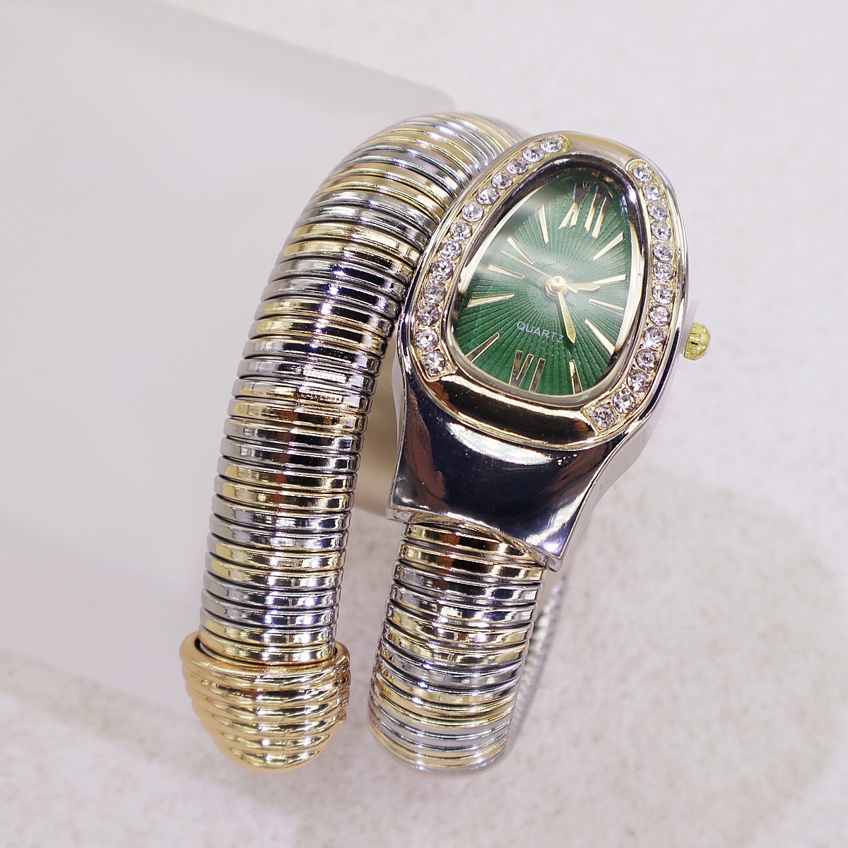 25年夏季新款外贸特色热销款镶钻弹力缠绕蛇形精美腕表工厂直销款