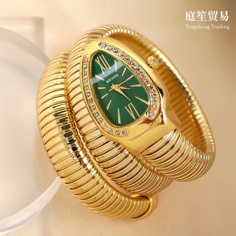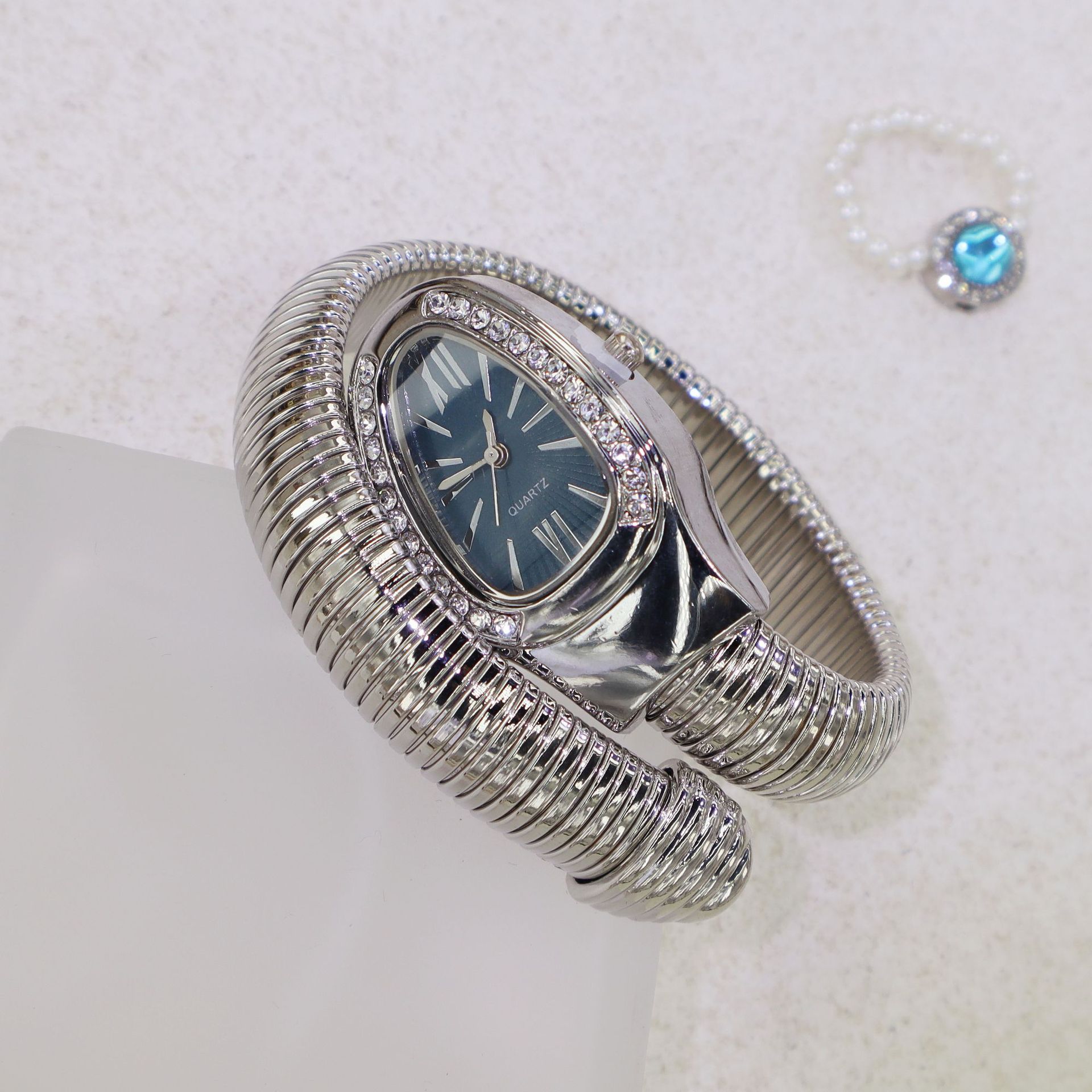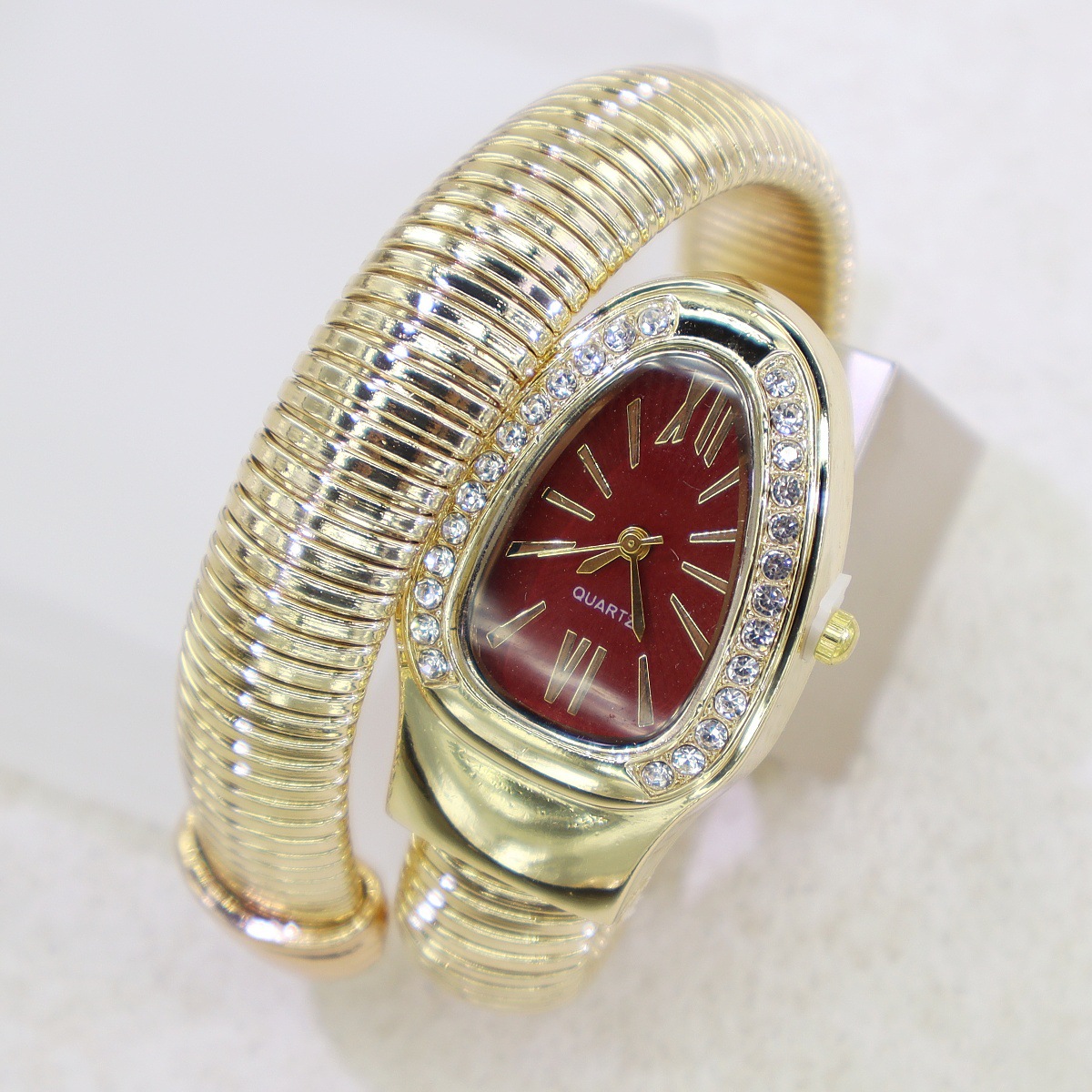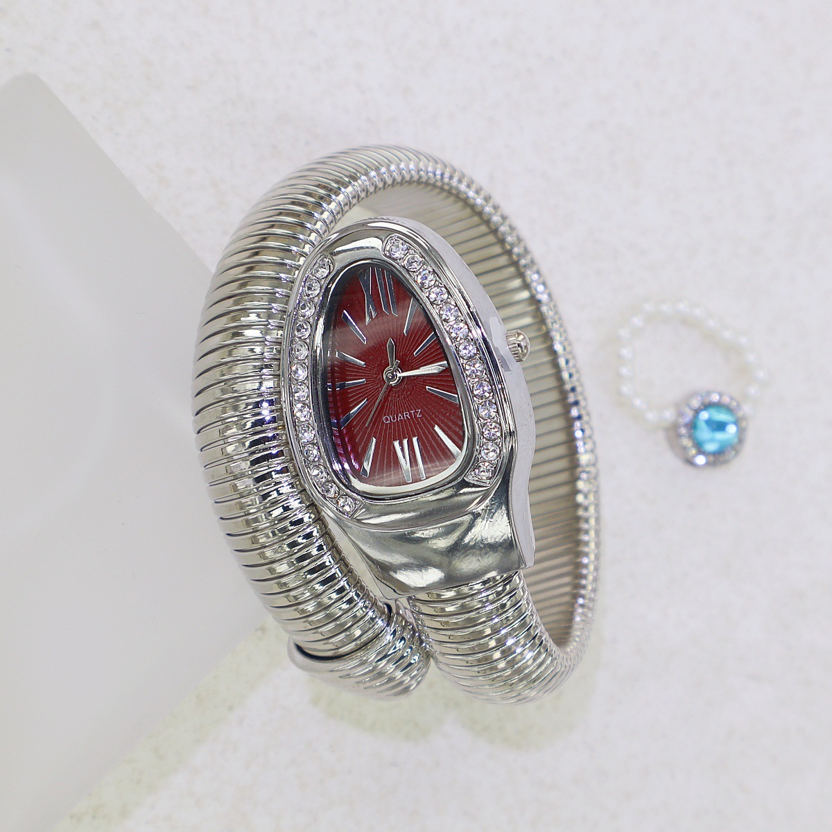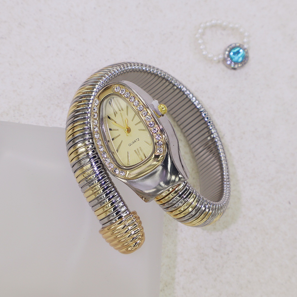 25年夏季新款外贸特色热销款镶钻弹力缠绕蛇形精美腕表工厂直销款