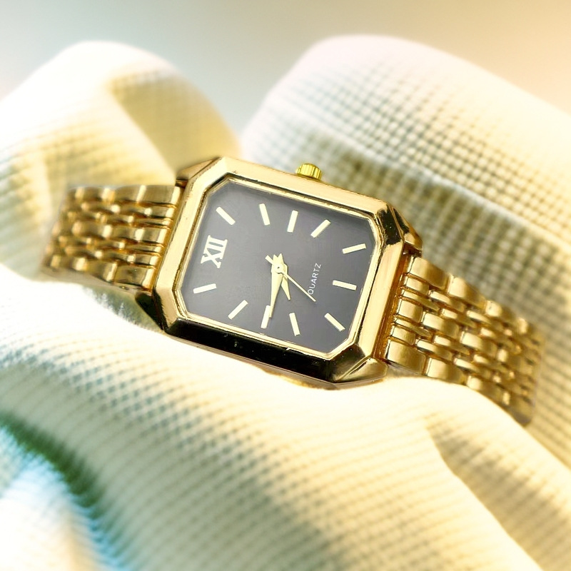 小さい四角形の金は黒面の女性の石英の腕時計のファッションのレジャーの豪華で精巧な女性の時計を持ちます。