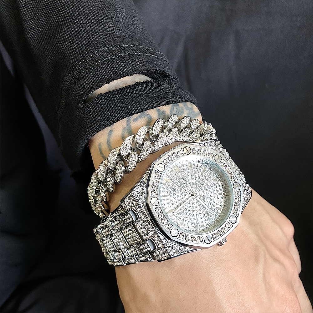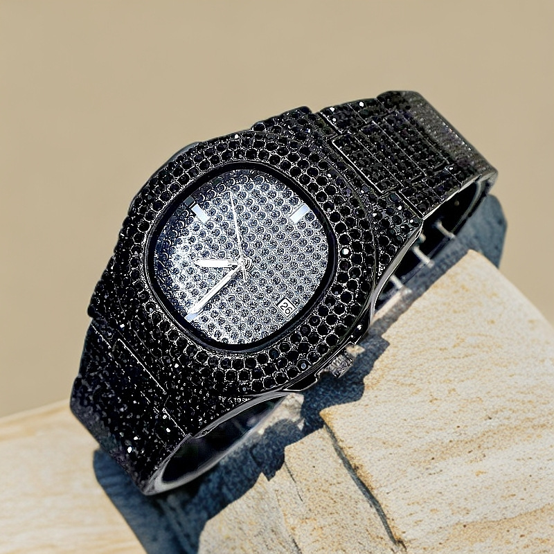 古典的な正方形の石英時計の豪華なダイヤモンドのファッションの満天の星の円形の鋼帯の男性の時計のドリルの腕時計の男性
