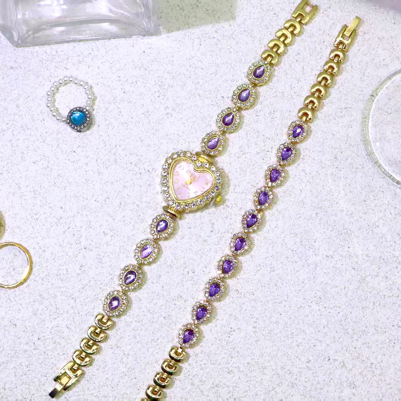 新しいラブレディブレスレットウォッチセットクォーツカジュアルファッションダイヤモンド女子学生ファッションウォッチ外国貿易クロスボーダー