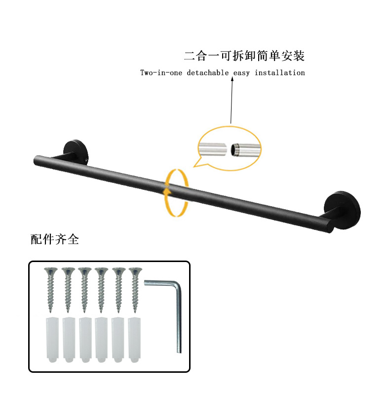 跨境不锈钢毛巾杆套装卫生间打孔壁挂置物架浴室可拆分毛巾单杆