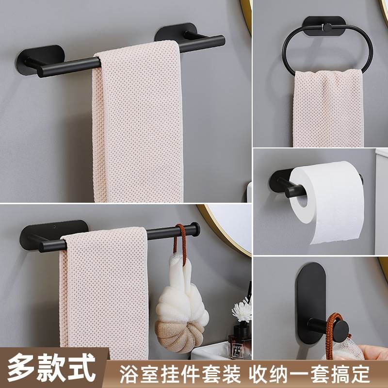 跨境毛巾杆套装不锈钢可拆装分体毛巾杆纸巾架浴巾环卫生间套装