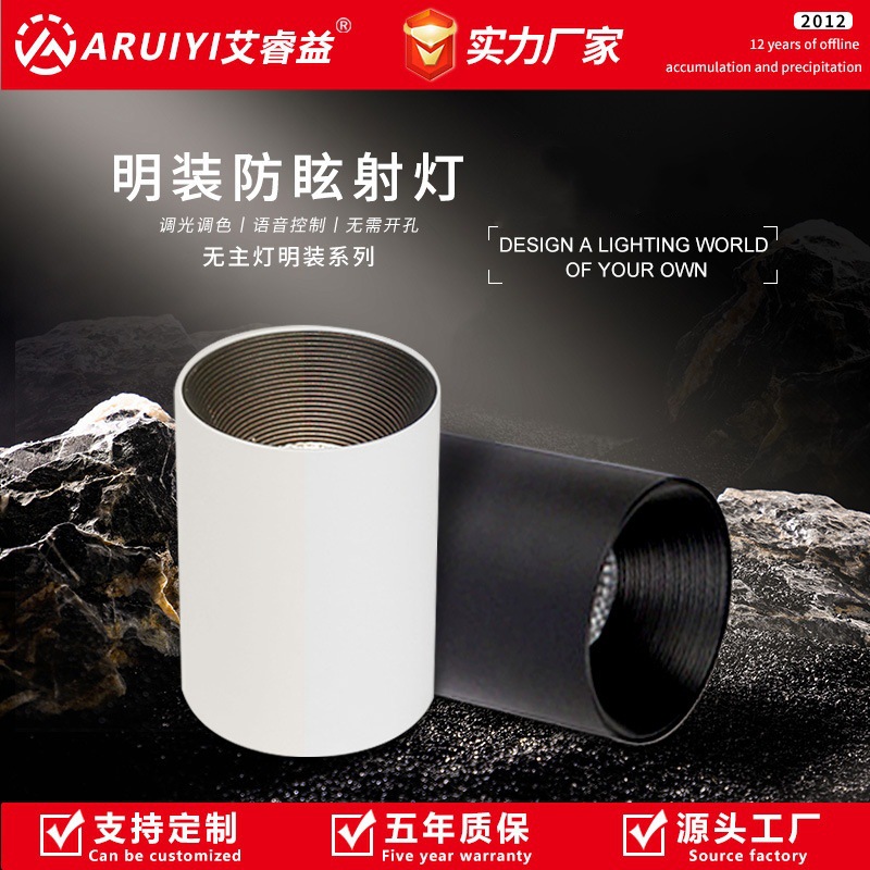 表面実装スマート調光スポットライト、住宅リフォーム、商業用穴なし天井壁洗浄ライト、防眩ヒル表面実装スポットライト
