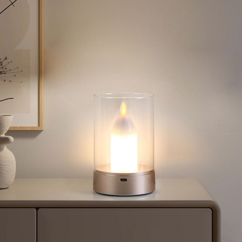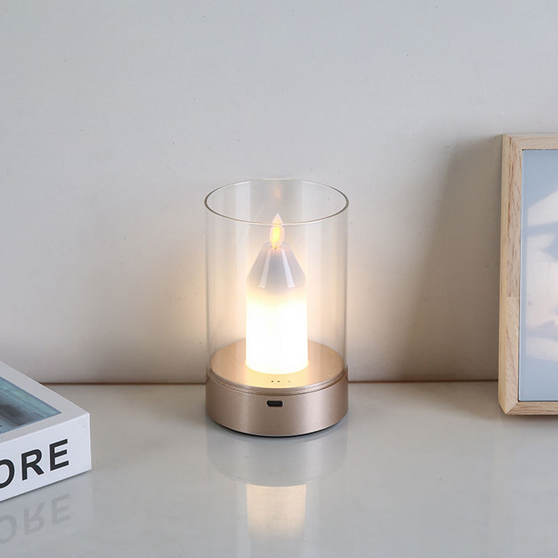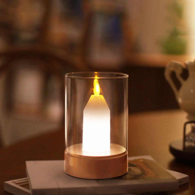 跨境创意小夜灯浪漫烛光灯餐厅酒吧桌面氛围灯蜡烛台灯扫手感应灯