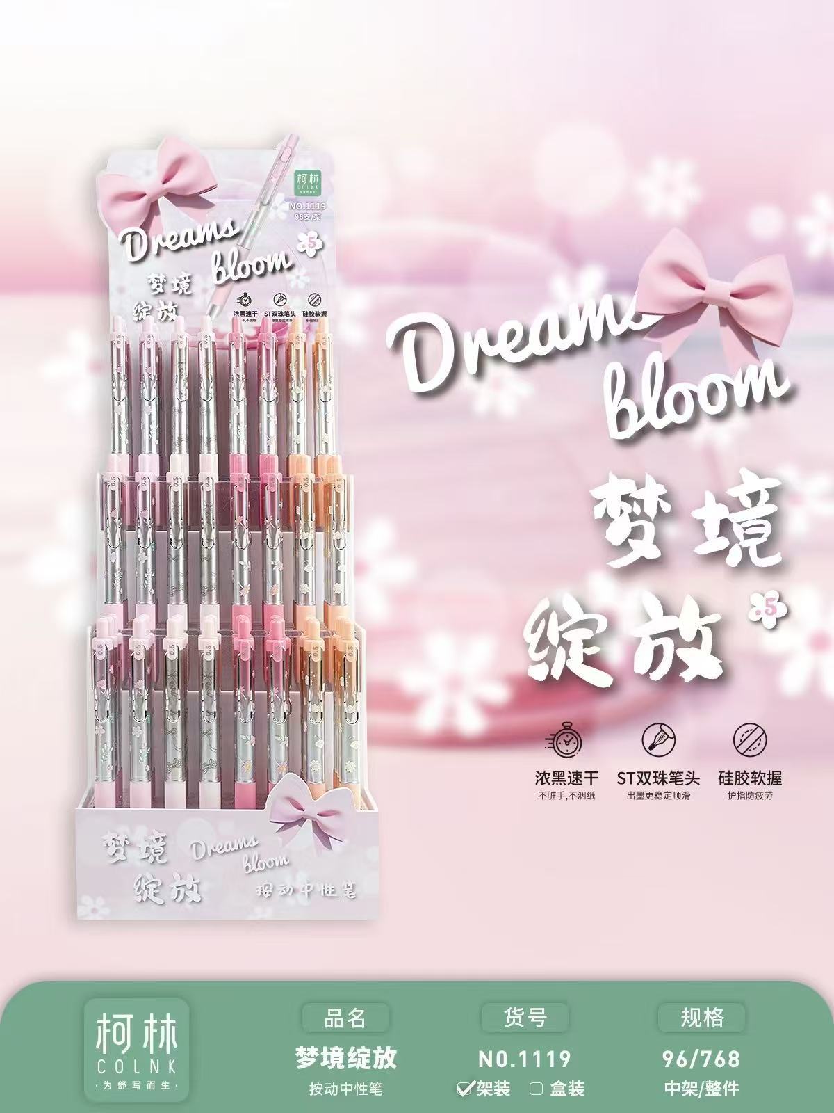 笔芯颜色 1架柯林1119梦境绽放中性笔黑色(96支),柯林1119梦境绽放-A1梦想花园深粉杆(12的倍数起梦拍),柯林1119梦境绽放-A2如梦似幻浅粉杆(12的倍数起拍),柯林1119梦境绽枚红杆-A3花式未了(12的倍数起拍),柯林1119梦境绽放-A4静享花开橙杆(12的倍数起拍)