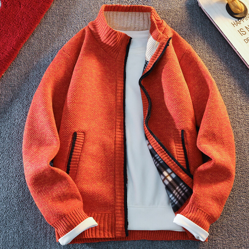 外贸专供男士立领毛衣开衫冬季新款加绒加厚外穿针织衫外套批发男
