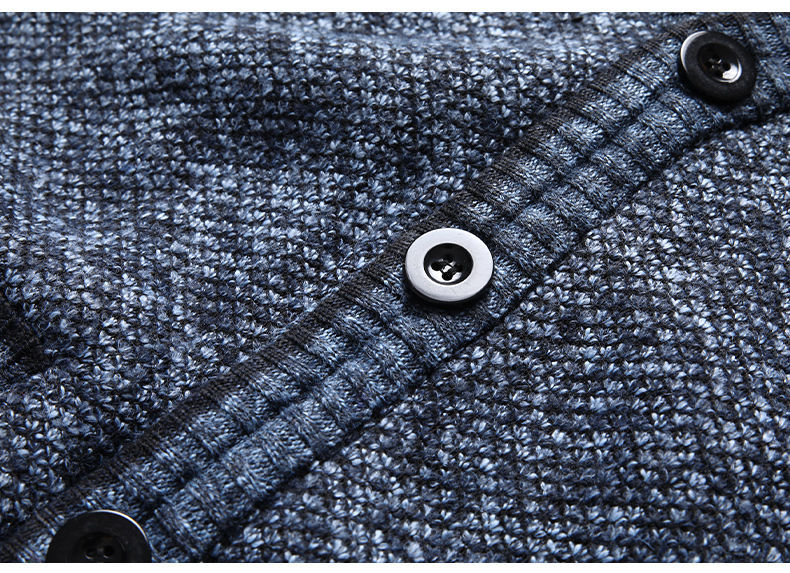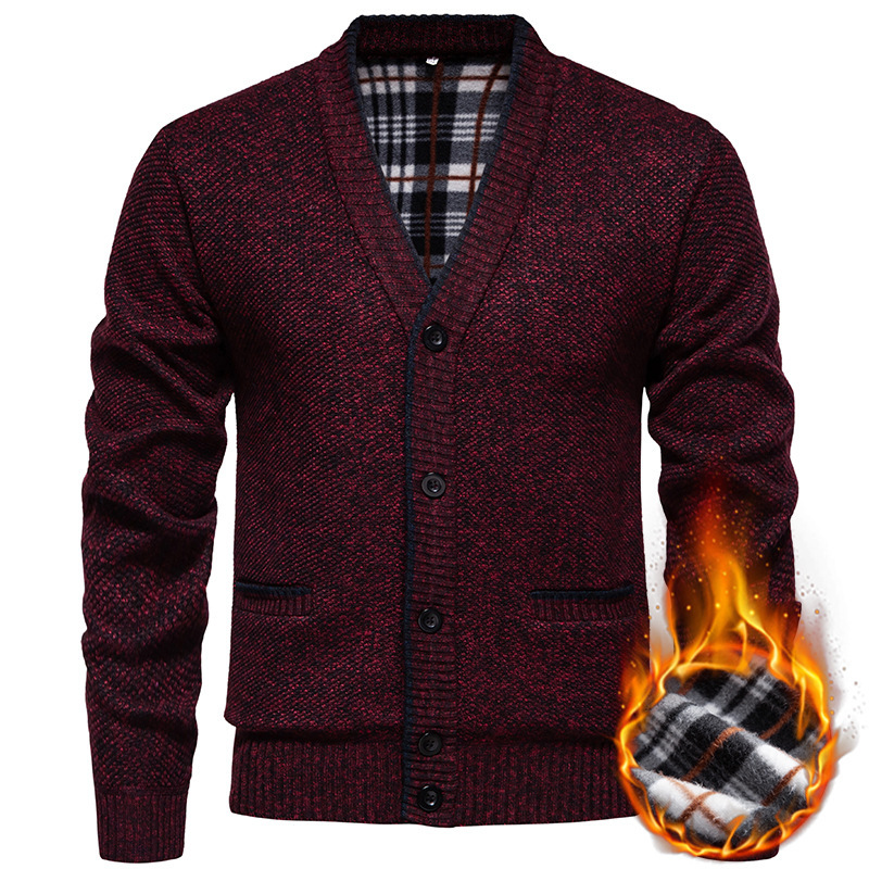 跨境专供冬季新款休闲加绒男士针织长袖V领毛衣青年开衫外套批发
