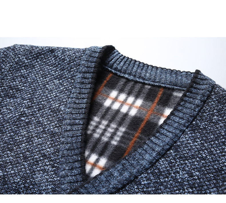 亚马逊专供休闲男士加绒加厚针织衫长袖时尚V领毛衣青年开衫批发