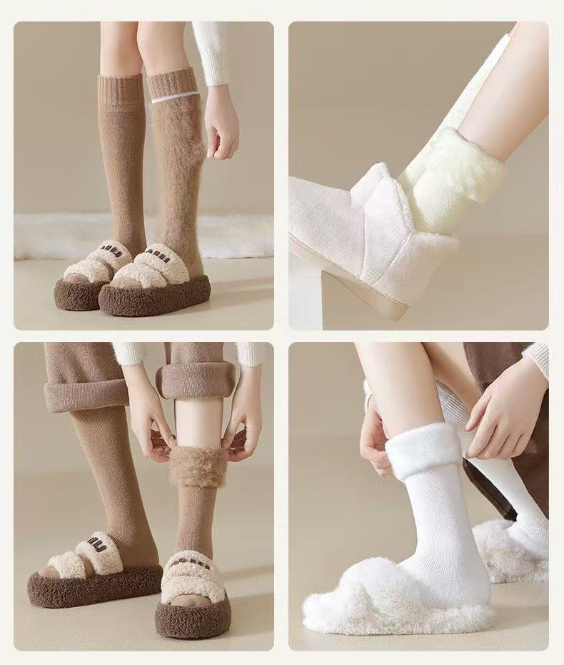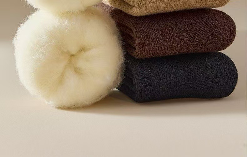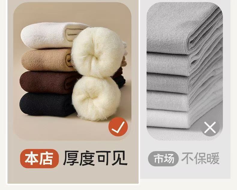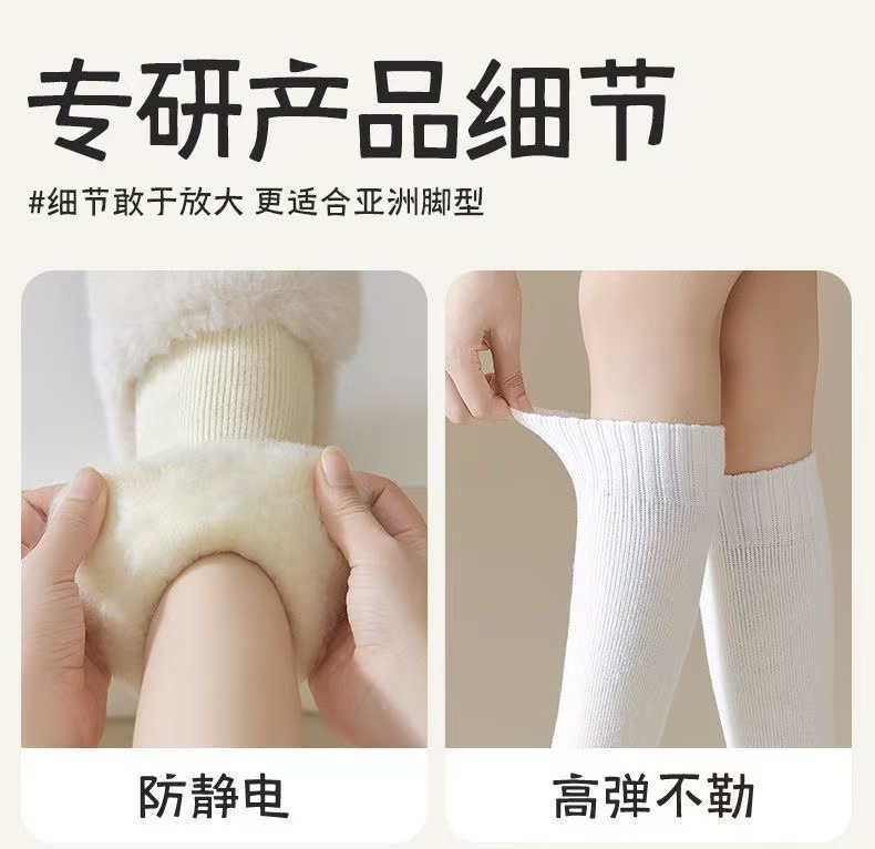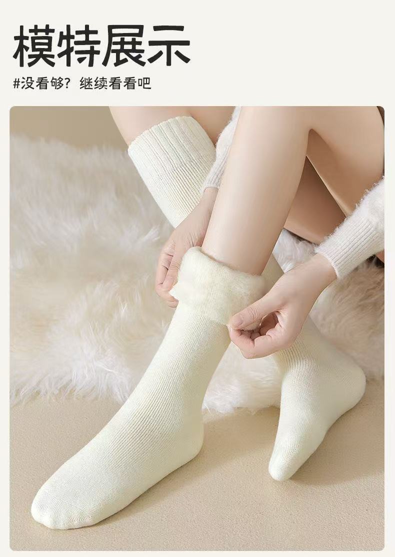 羊绒袜子女秋冬款中筒袜加绒加厚月子袜毛绒睡眠地板超厚冬季长袜