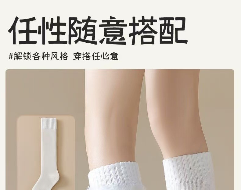 小腿袜子女秋冬加绒加厚保暖袜透气吸汗冬天羊绒毛圈女士长筒袜子