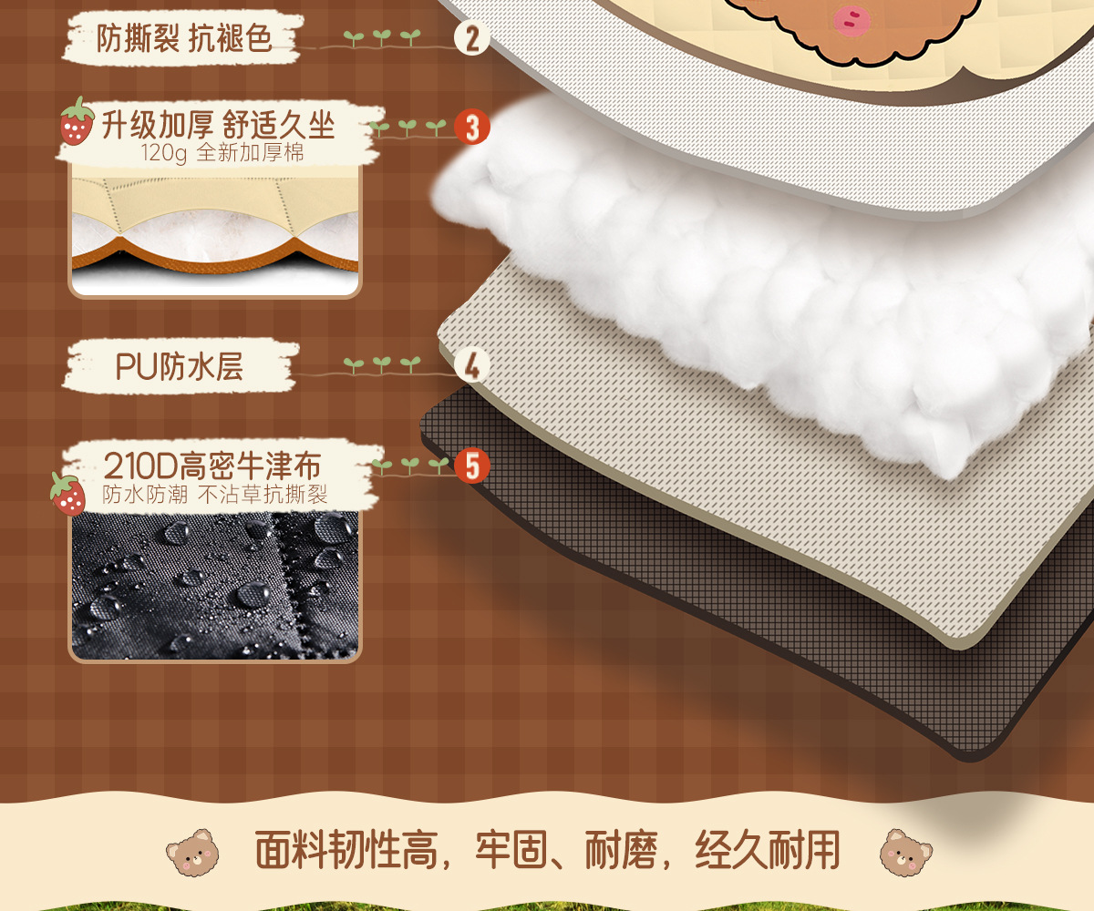 野餐垫防潮垫加厚露营户外地垫便携野炊春游草坪垫子防水帐篷地垫