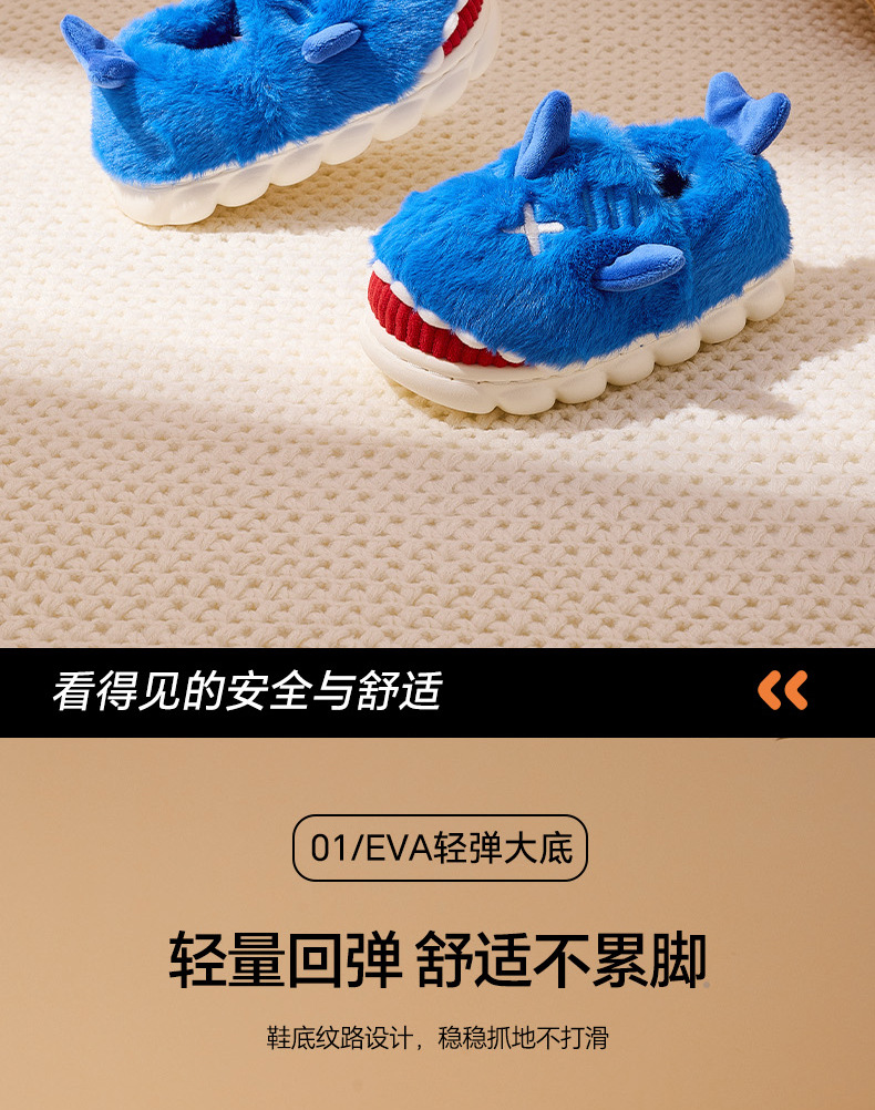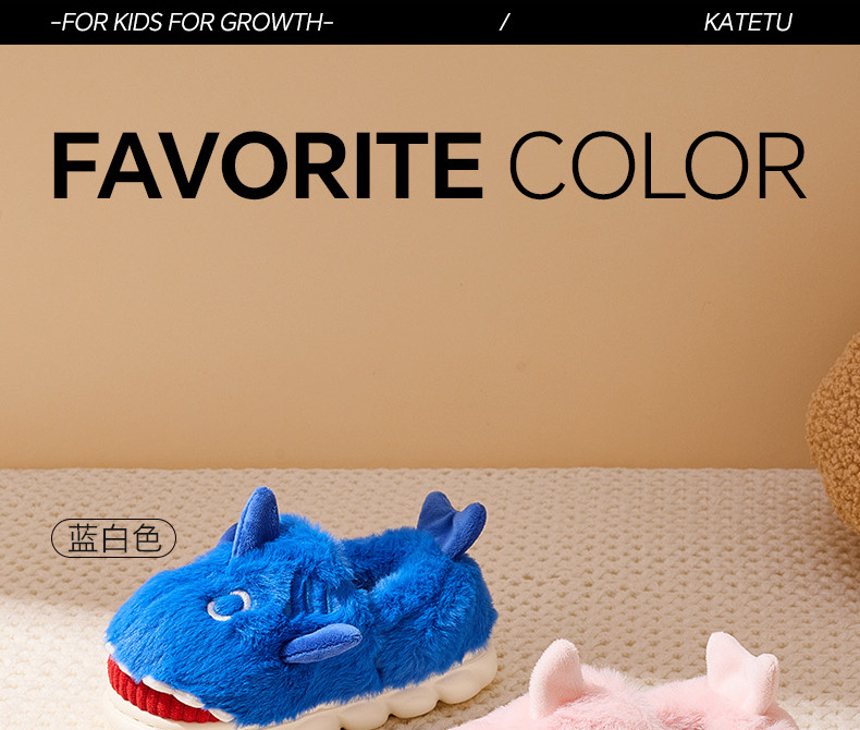 卡特兔儿童拖鞋男童女童秋冬棉拖新款加绒保暖宝宝室内毛毛拖鞋