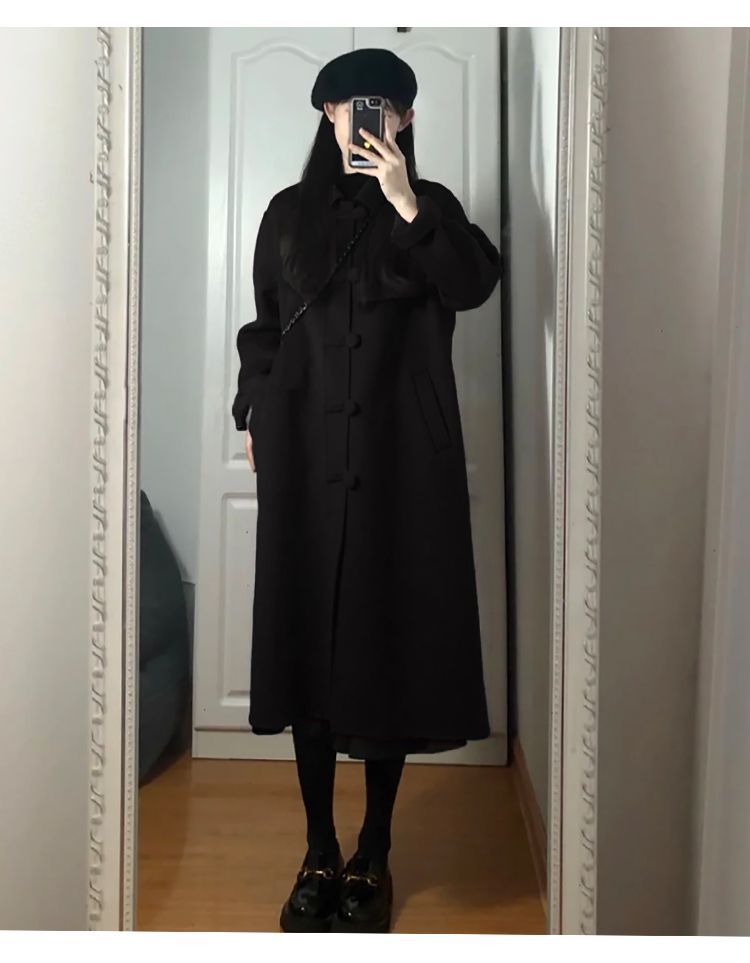 女性のためのシンプルな黒のウールコート 2025 秋と冬の新しいハイエンド韓国ヘボンスタイルウールコートトレンディ