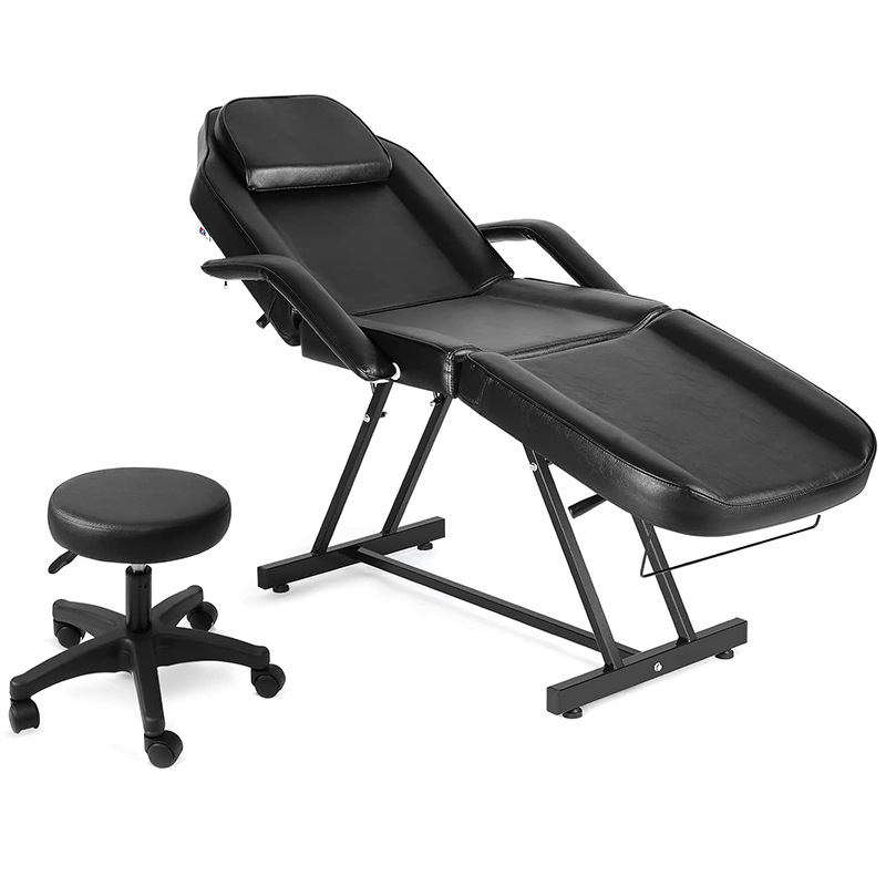 高級マッサージベッド、美容ベッド、調節が簡単な美容椅子、技術者用スツール付き、平置き可能なマッサージチェア、美容椅子