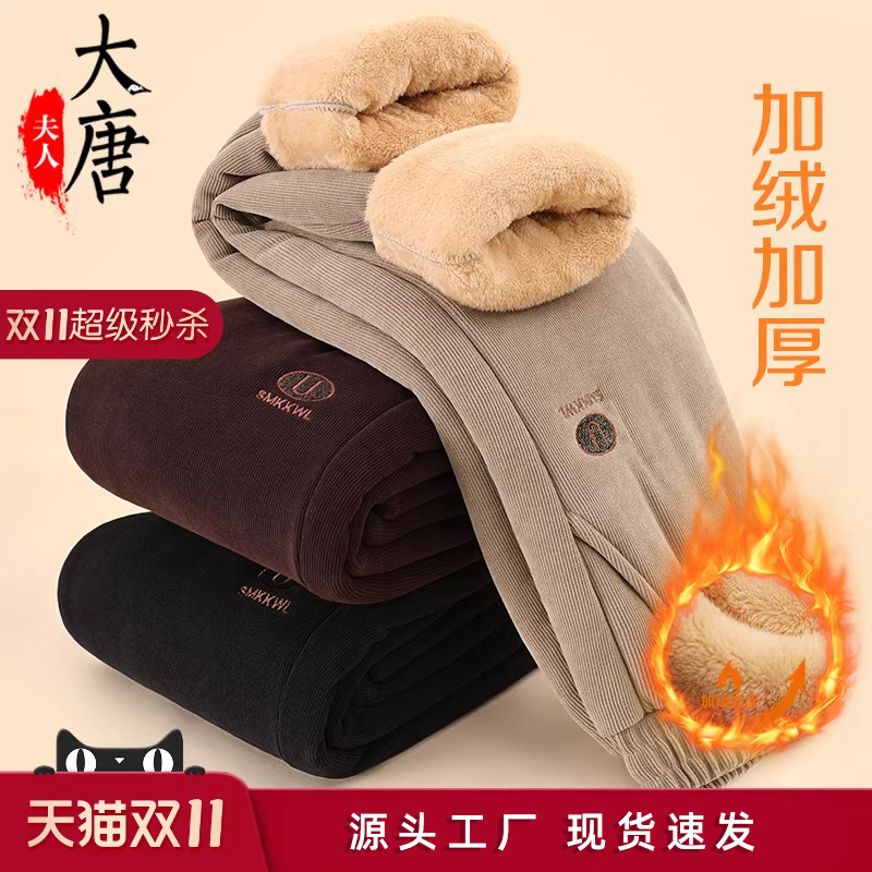 妈妈春秋加绒裤子羊羔绒棉裤冬季加厚灯芯绒中老年人奶奶大码女裤