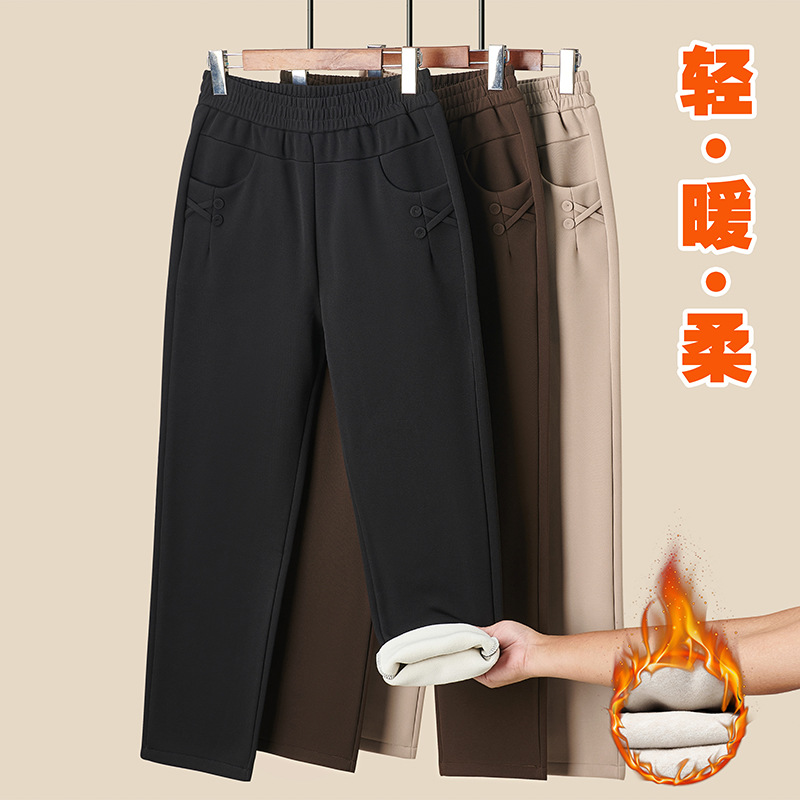 2025秋冬妈妈装加绒加厚直筒长裤休闲裤松紧腰女裤中老年女装新款