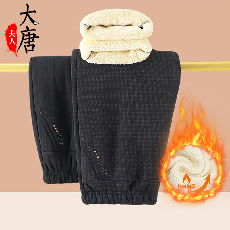 妈妈加绒裤子秋冬奶奶棉裤休闲加厚长裤中老年女老人老太太保暖裤