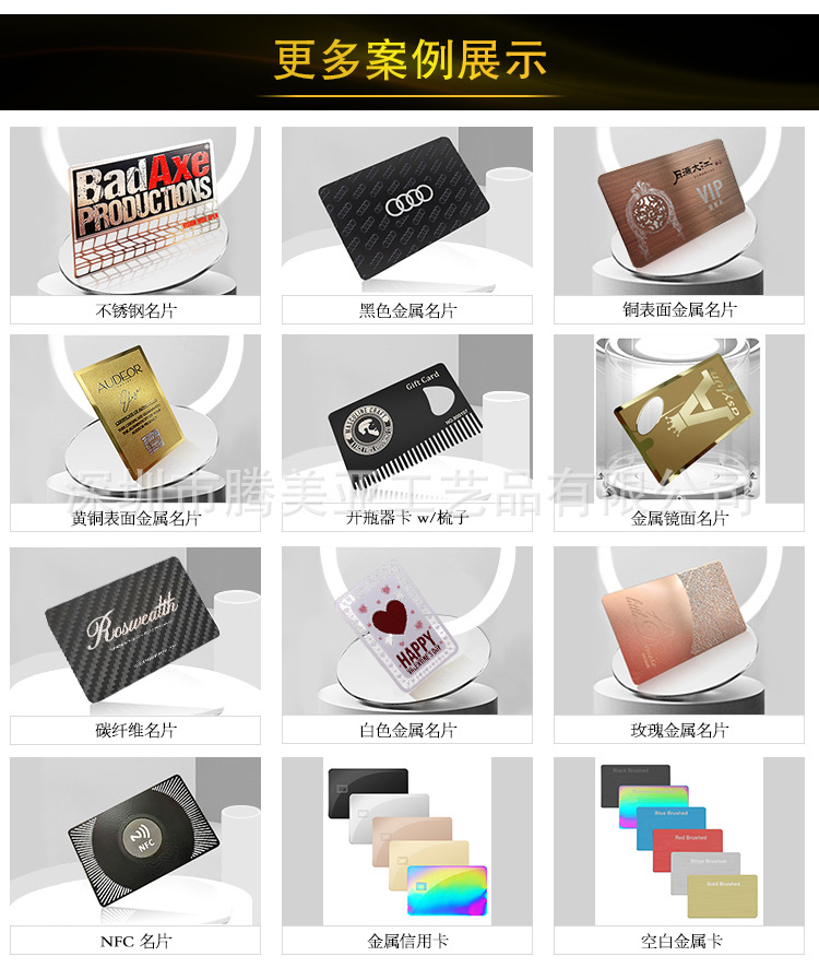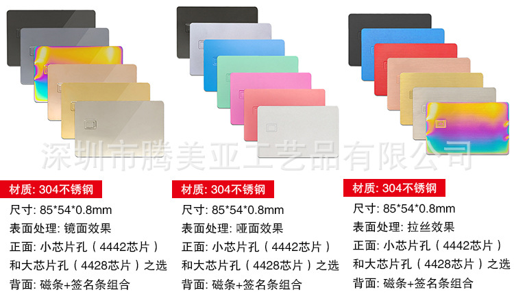 库存颜色:黑色哑面,黑色拉丝面,金色拉丝面,银色拉丝面,玫瑰金拉丝面,24k金色镜面卡,银色镜面卡,玫瑰金镜面卡等。