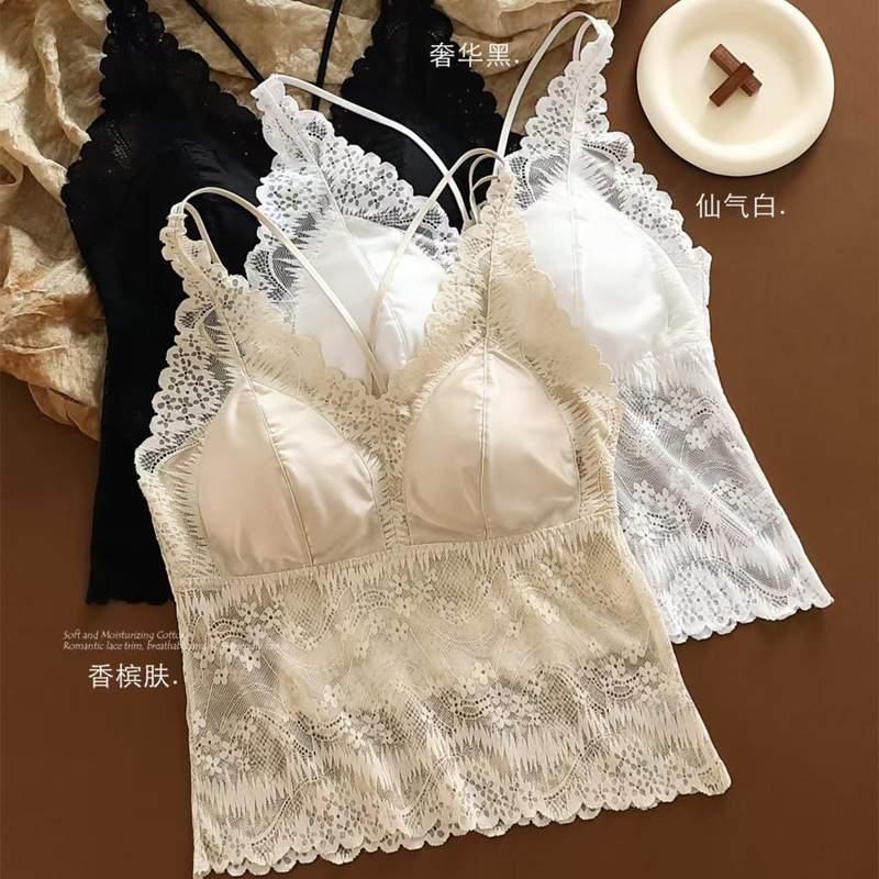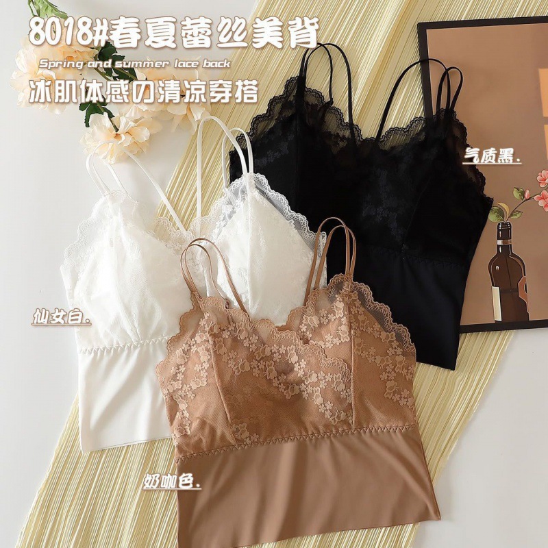 氷糸クロス美背レース胸ストラップベストシンプルで快適な通気性セクシーラテックス胸パッド大サイズ下着