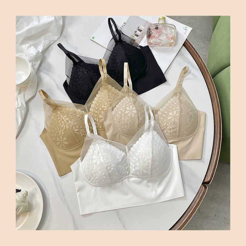 夏の新作レースキャミソール薄型女性フレンチ三角カッププッシュアップシームレス痩身薄型ストラップ美しいバック下着
