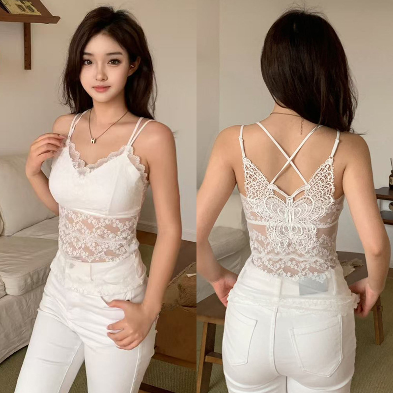 生放送人気のバタフライビューティーバックフレンチレーススパゲッティストラップサスペンダー露出防止シームレス固定カップベスト女性用