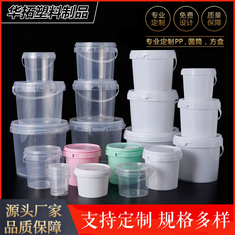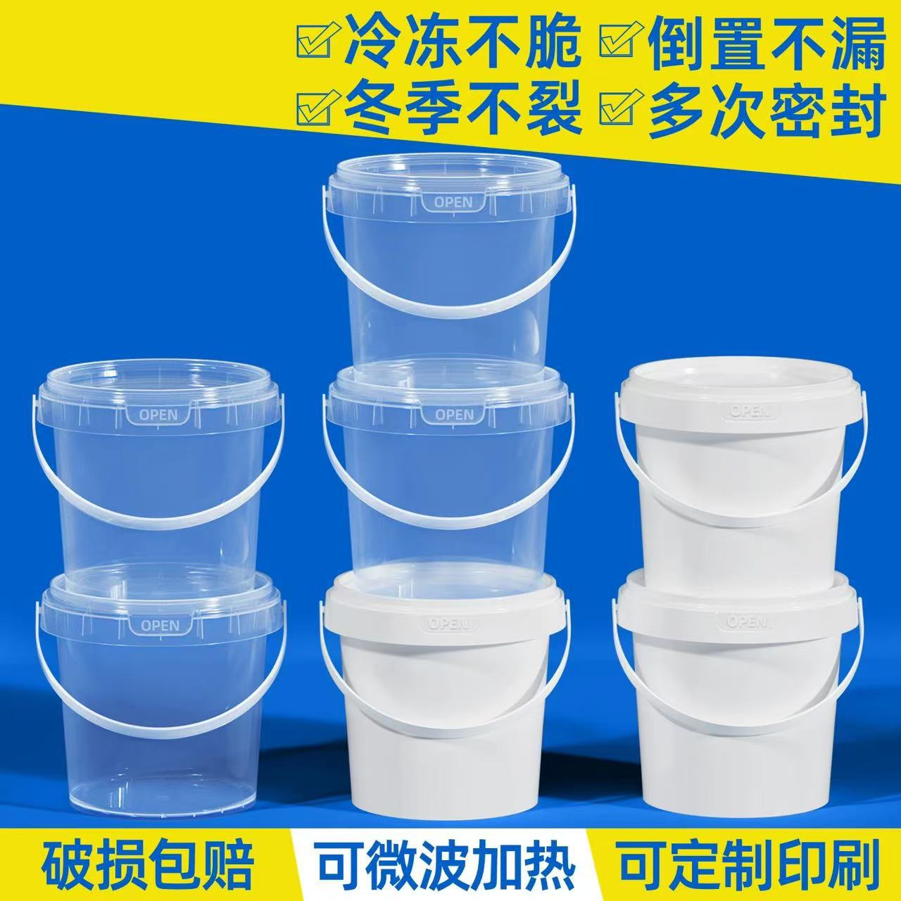厂家直销食品级0.3-5L塑料桶圆桶白色透明密封桶打包收纳包装桶
