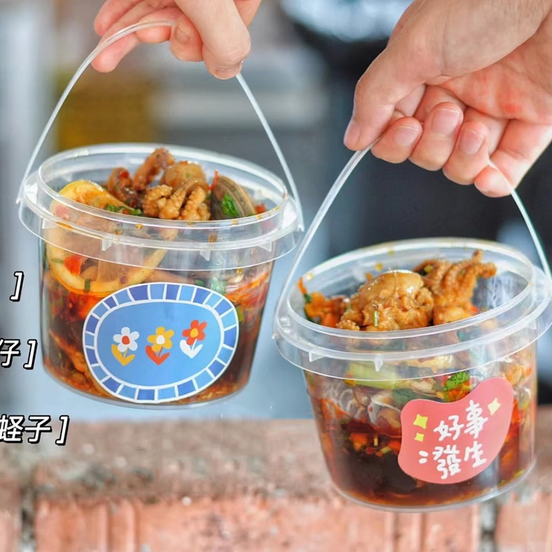 食品级塑料桶手提封盖龙虾桶PP水果捞奶茶桶批发冰粉外卖打包桶