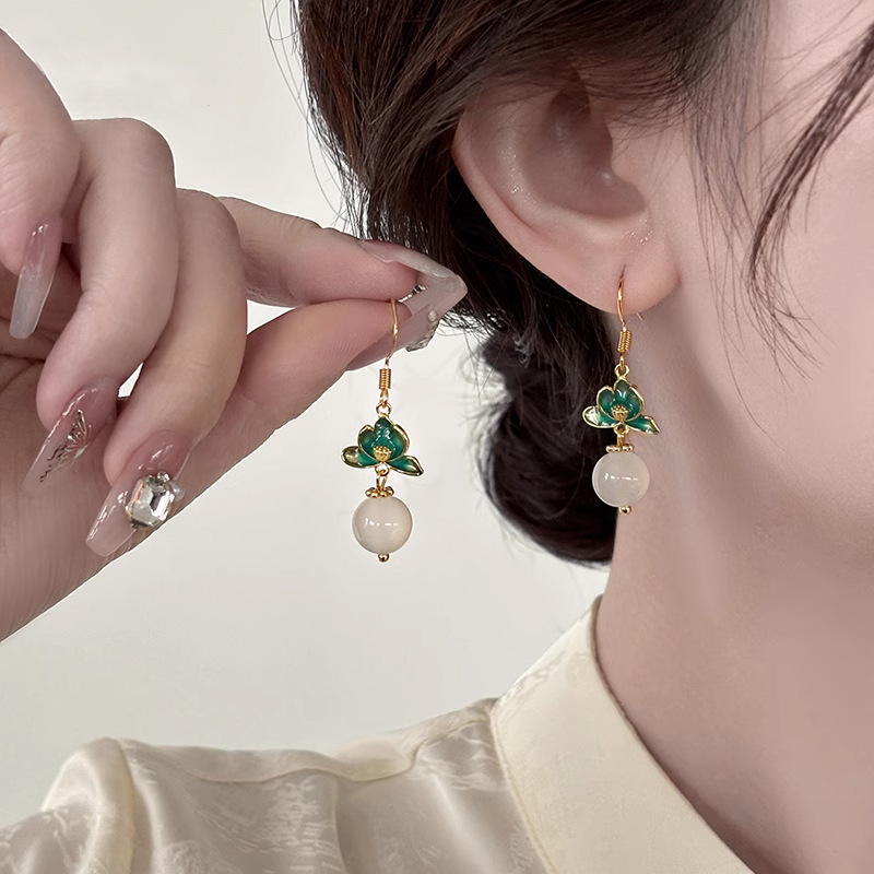 国風の緑の花のイヤリングは軽くて豪華で高級感があります。