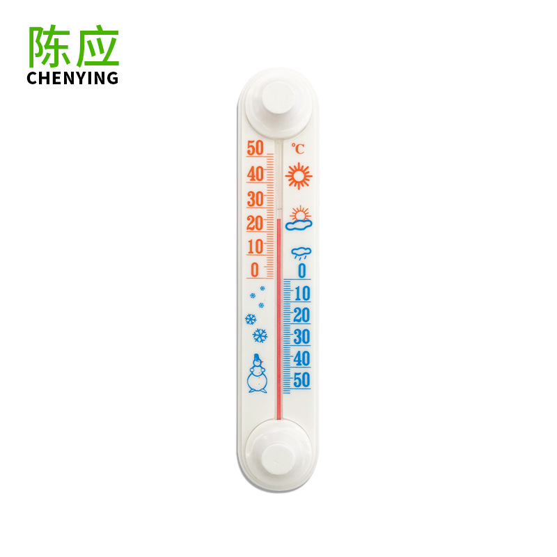 陳応3009窓式の白い温度計は室内の室外の赤い灯油のプラスチックの温度計の現物の卸売りを測定します。