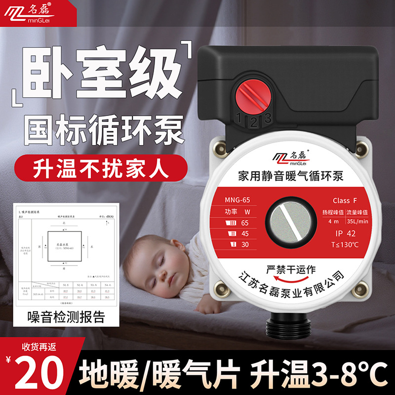 名磊家庭用温水循環ポンプ暖房ボイラー地暖地熱配管ポンプ大出力加圧ポンプシールドポンプ