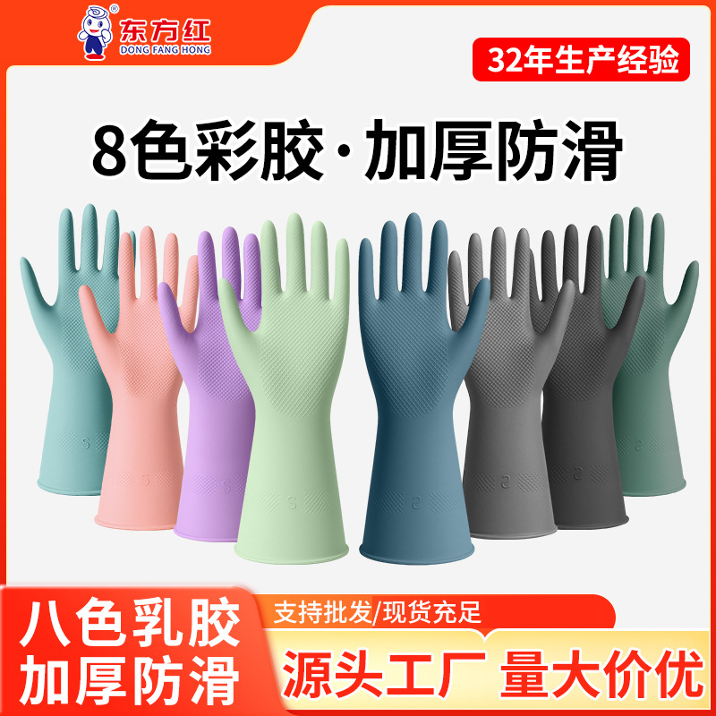 東紅ゴム食器洗い手袋キッチン洗濯クリーニング防水厚く耐久性のあるラテックス手袋卸売