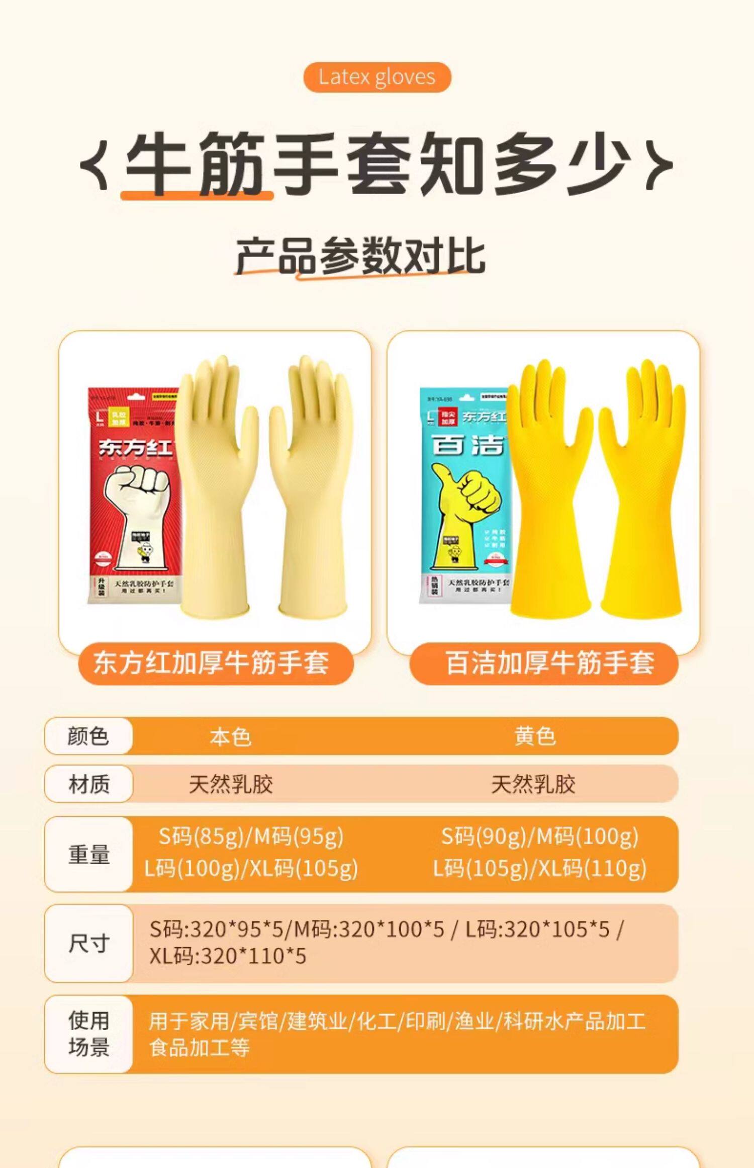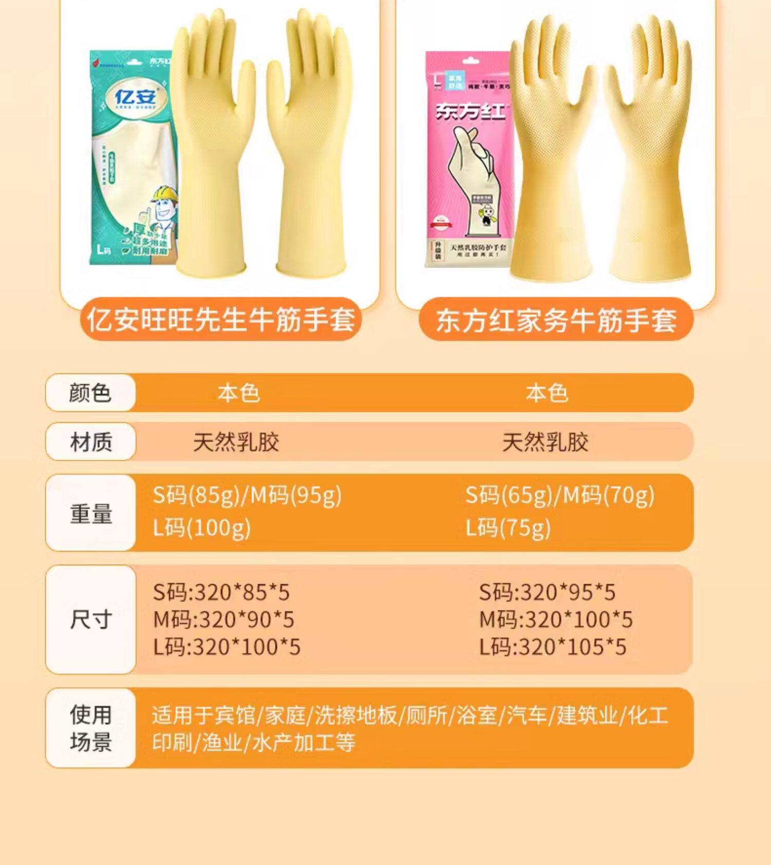 东方红牛筋乳胶手套餐饮洗碗家务厨房耐用家用刷碗洁防水加厚女