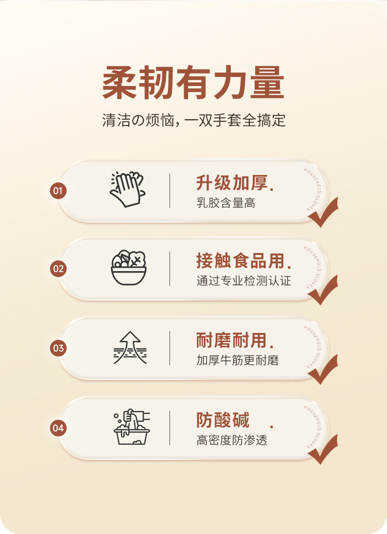 ラテックス手袋を長くして、ゴムの家庭用手袋を厚くします。