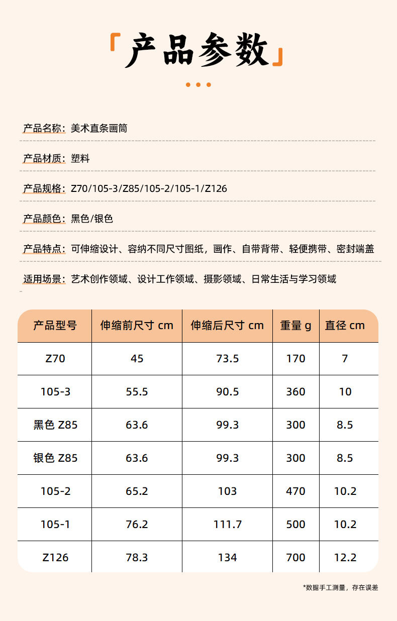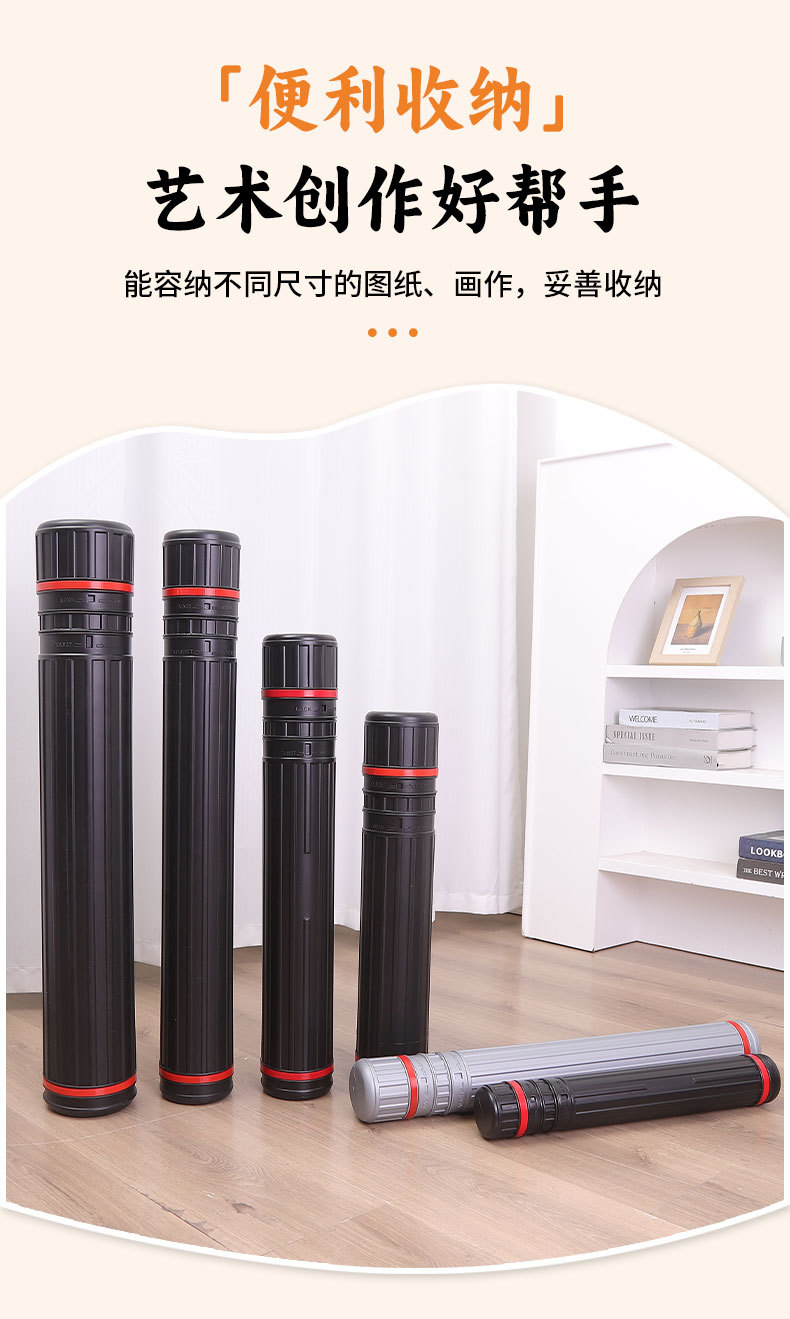 跨境美术直条画筒 伸缩画筒收纳画桶装图纸宣纸筒塑料便携式画筒