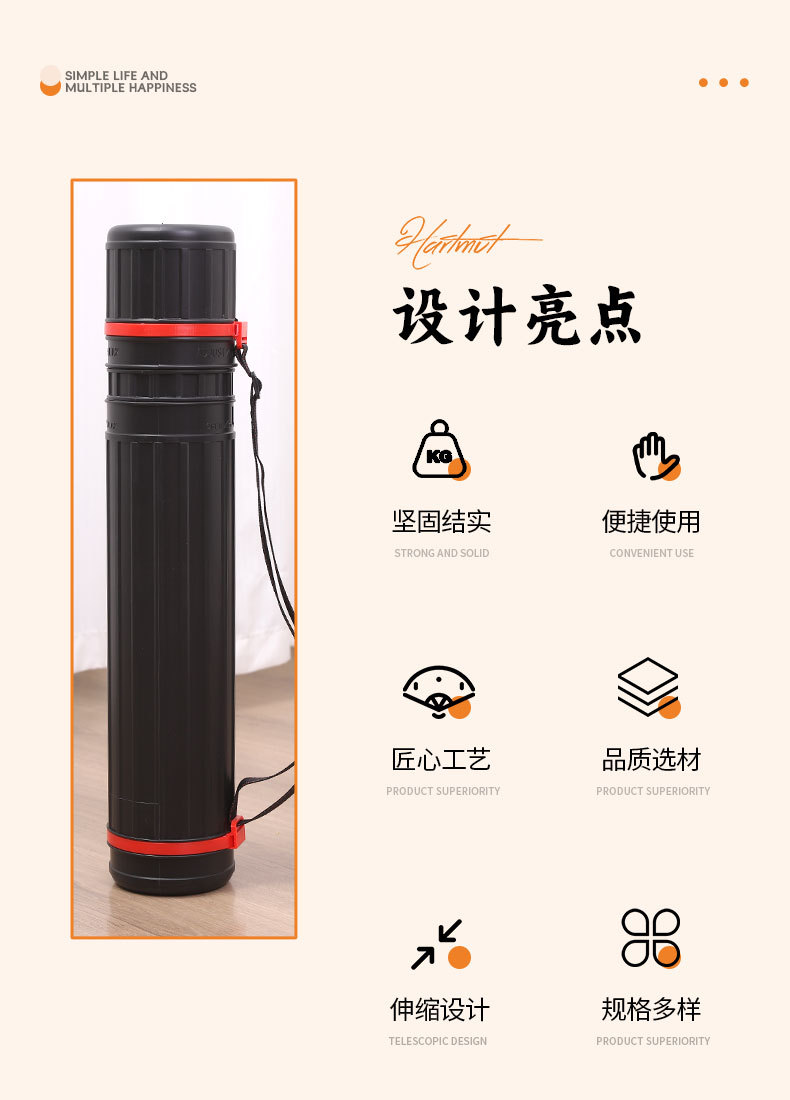多功能黑色画筒加厚可伸缩海报收纳筒筒5款可选大容量便携书画筒