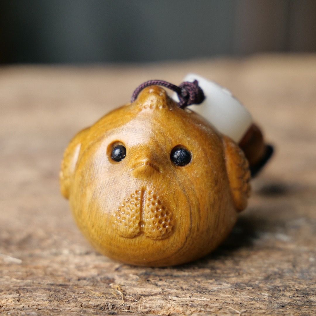 工場直販の緑白檀とシダーウッドの彫刻、猫と犬の形をしたかわいいペットのハンドル、ポータブルクリエイティブハンドル